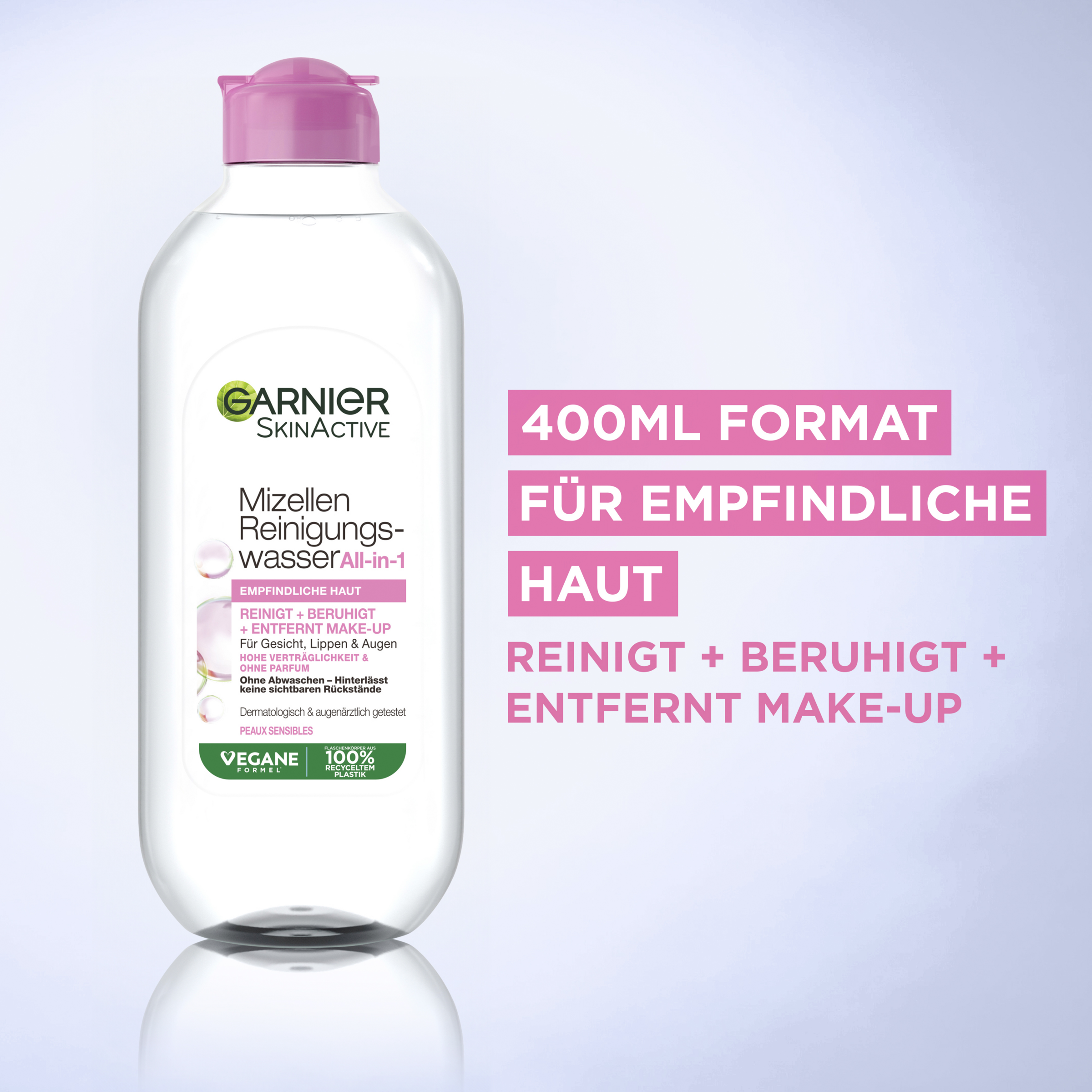 Die Innovation von Garnier: Die Mizellen Reinigungstechnologie ist eine praktische Reinigung für empfindliche Haut. Es handelt sich bei Mizellen um reinigende Wirkstoffe, die wie ein Magnet Unreinheiten und Make-up auf der Haut anziehen, ganz ohne Reiben.
