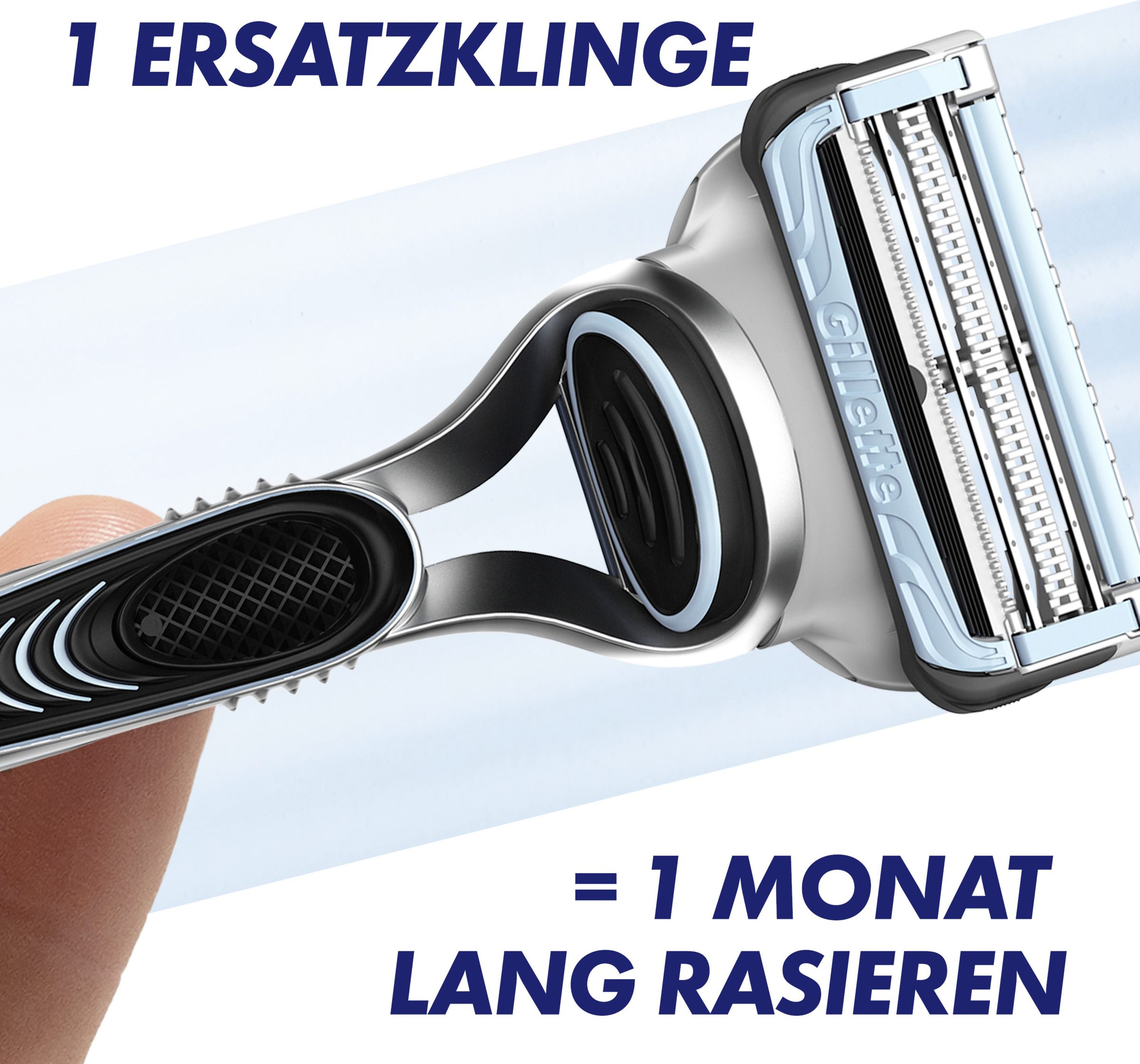 - eine Ersatzklinge reicht für bis zu 1 Monat Rasur