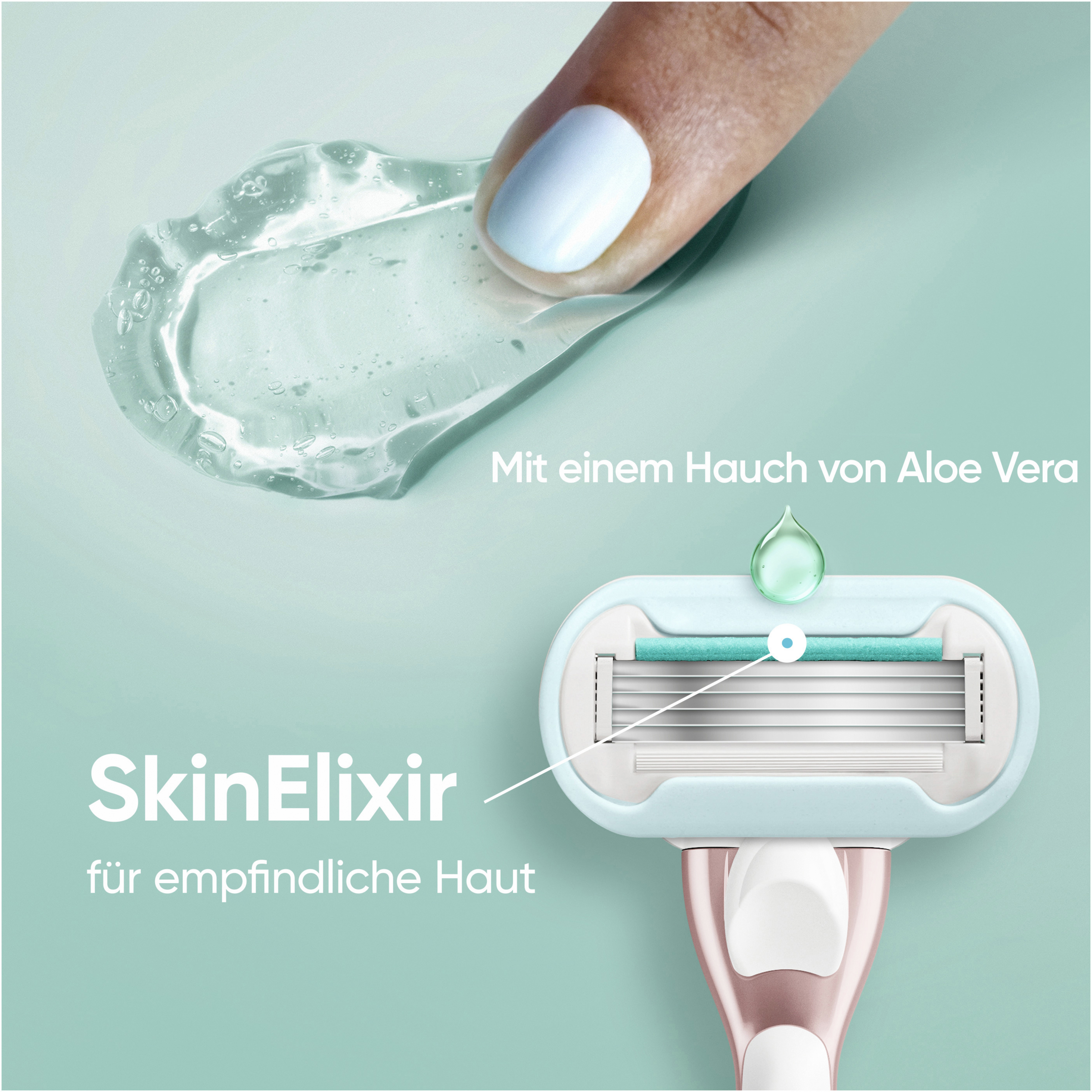 - SKINELIXIR GEL: Der Gleitstreifen besitzt einen Hauch von Aloe Vera