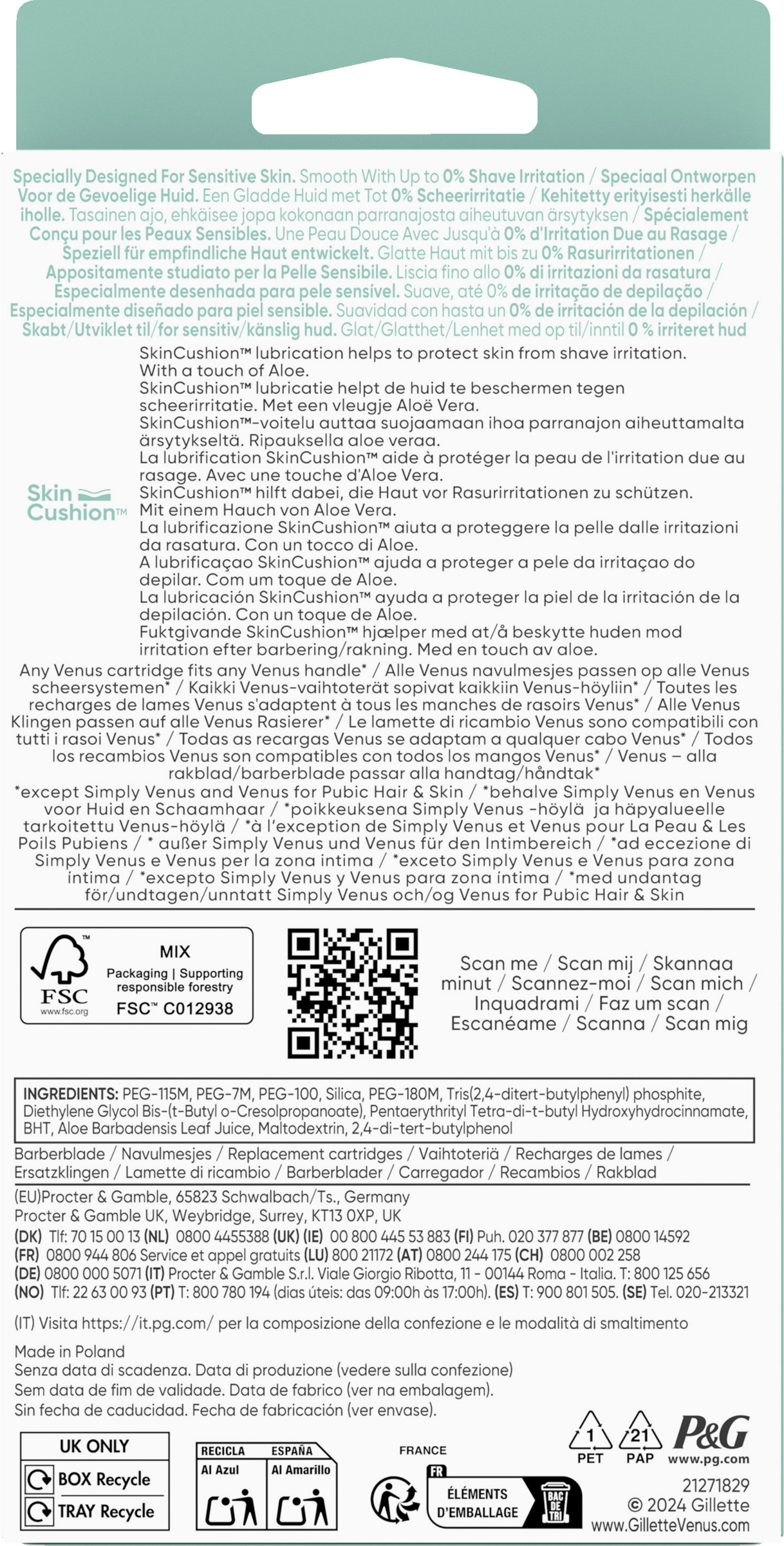 Schenke Deiner empfindlichen Haut, die verwöhnende Glätte, die sie verdient. Diese Ersatzklingen sind speziell für Frauen mit empfindlicher Haut entwickelt und bieten eine langanhaltende Rasur. Eine Rasierklinge hält bis zu 30 Tage. Unser SkinCushion-Gleitstreifen (und SkinElixir mit einem Hauch von Aloe Vera) hilft, die Haut zu schützen. Zusätzliche Sicherheit: Unser langlebiges und ergonomisches Metallhandstück sorgt für eine bessere Präzision. Alle Venus Ersatzklingen passen auf alle Venus Handstücke (außer Simply Venus und Venus für den Intimbereich. Die Duschhalterung hilft, Deinen Rasierer zwischen den Rasuren sauber und trocken zu halten. Genieße eine Rasur, die für deine Haut gemacht ist. Hol dir den Venus Pro Smooth Sensitive Rasierer. Suchst du nach weiteren Möglichkeiten, deine Haut zu verwöhnen? Die Gillette Venus Produkte wurden speziell für deinen Körper und dein Haar entwickelt, egal ob du trimmen, rasieren oder stylen möchtest. Entdecke noch heute die Produktreihe.