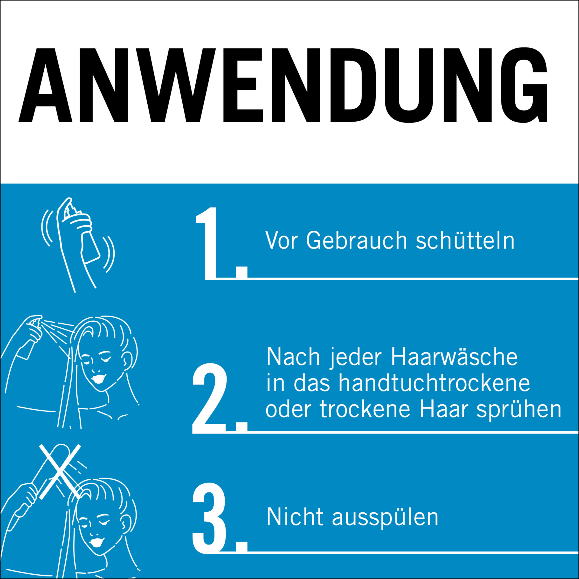 Vor Gebrauch schütteln! Nach jeder Haarwäsche in das handtuchtrockene oder trockene Haar sprühen. Nicht ausspülen! Regelmäßig anwenden.