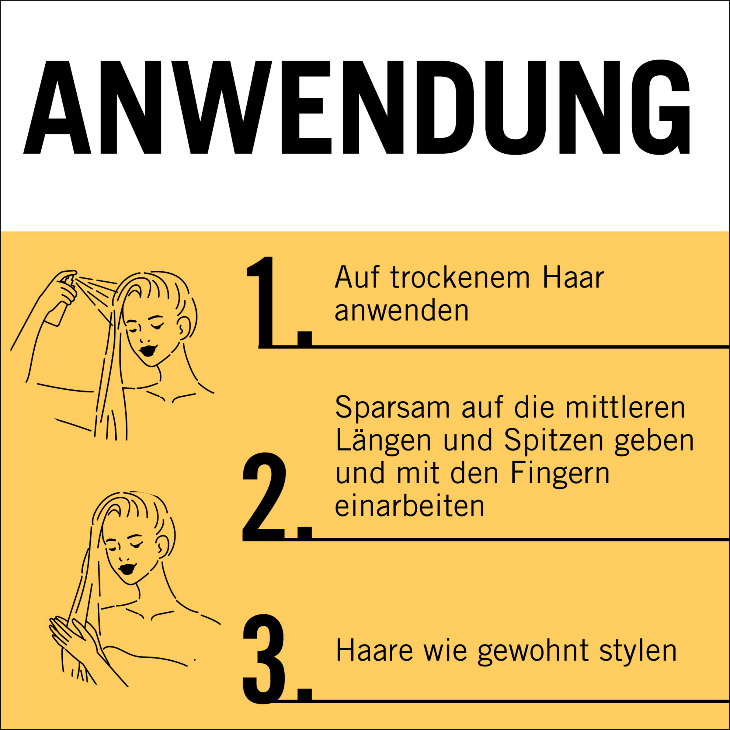 Für optimalen Hitzeschutz vor dem Föhnen und Glätten ins handtuchtrockene oder trockene Haar sprühen. Sparsam auf die mittleren Längen und Spitzen geben und trocknen. Nicht auswaschen! Vor Sonnenlicht schützen. Nicht in die Augen sprühen. Niemals Glätteisen oder Lockenstab bei nassem Haar verwenden. Entzündbar!