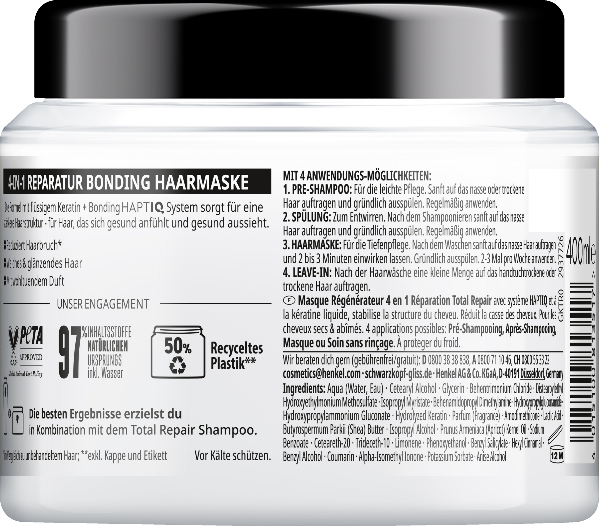 Gliss 4-in-1 Reparatur Kur Total Repair – Verwöhnende Pflege und weniger Haarbruch¹