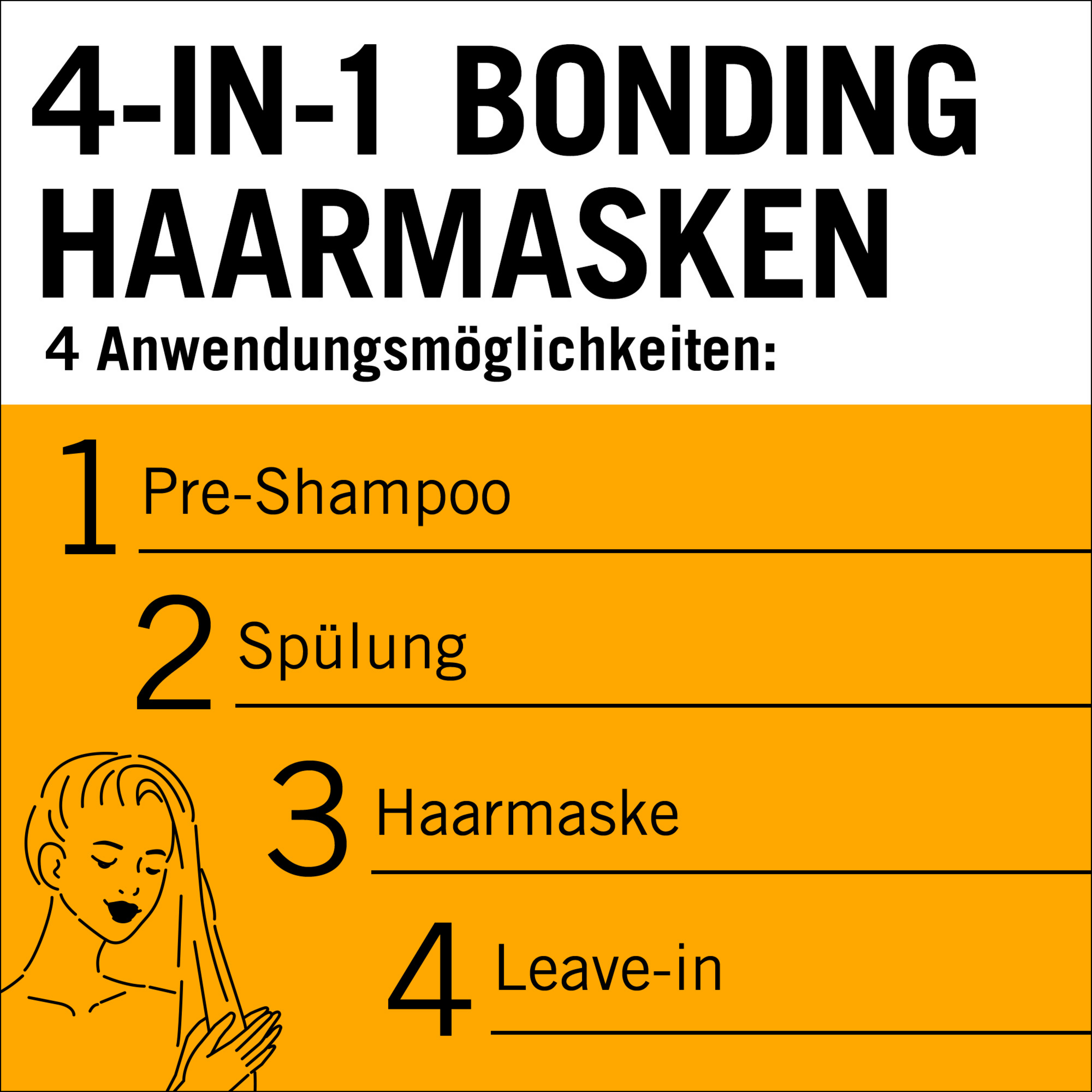 4. LEAVE-IN: Nach der Haarwäsche eine kleine Menge auf das handtuchtrockene oder trockene Haar auftragen.