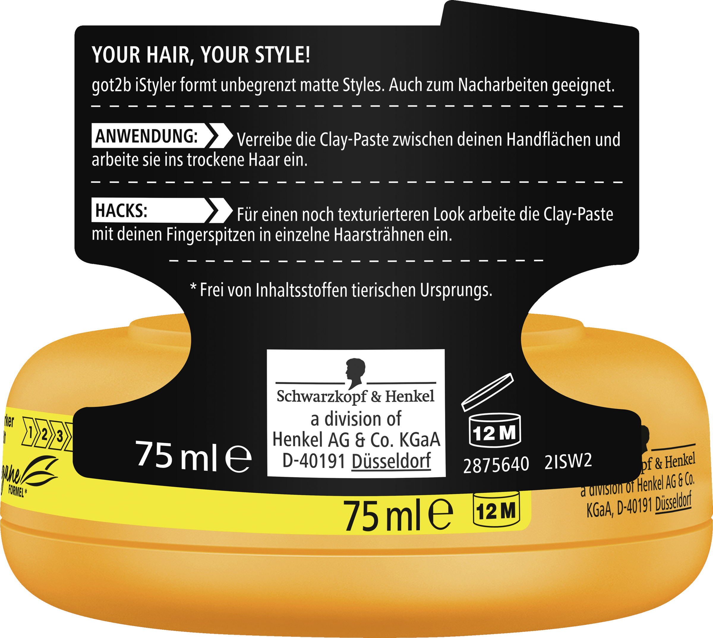 GOT2B iStyler Texture Clay - für matte Styles mit starkem Halt. Your Hair, Your Style! GOT2B iStyler formt unbegrenzt matte Styles. Auch zum Nacharbeiten geeignet. Die Formel ist vegan*.