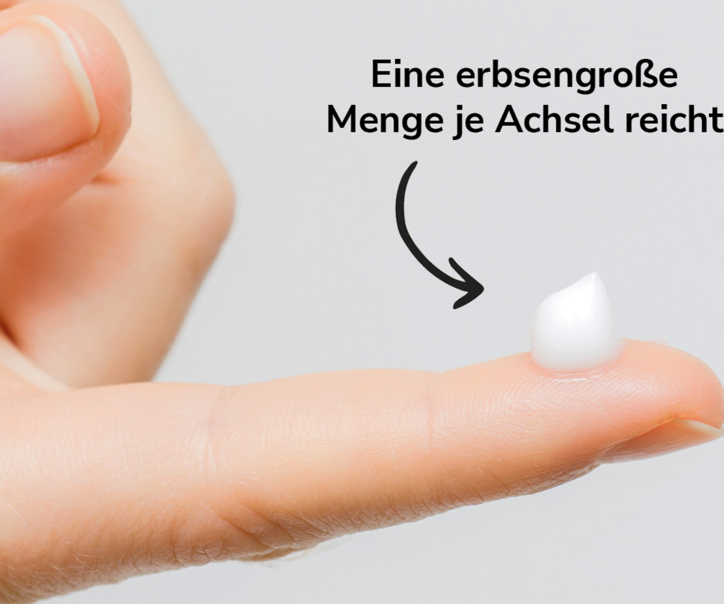 Ideal auf die gewaschene Achselhaut auftragen. Mit der Fingerkuppe eine erbsengroße Menge aus der Tube entnehmen und mit kreisenden Bewegungen die Achselhöhle eincremen. Bei richtiger Menge reicht die Verpackungsgröße 3-5 Monate.