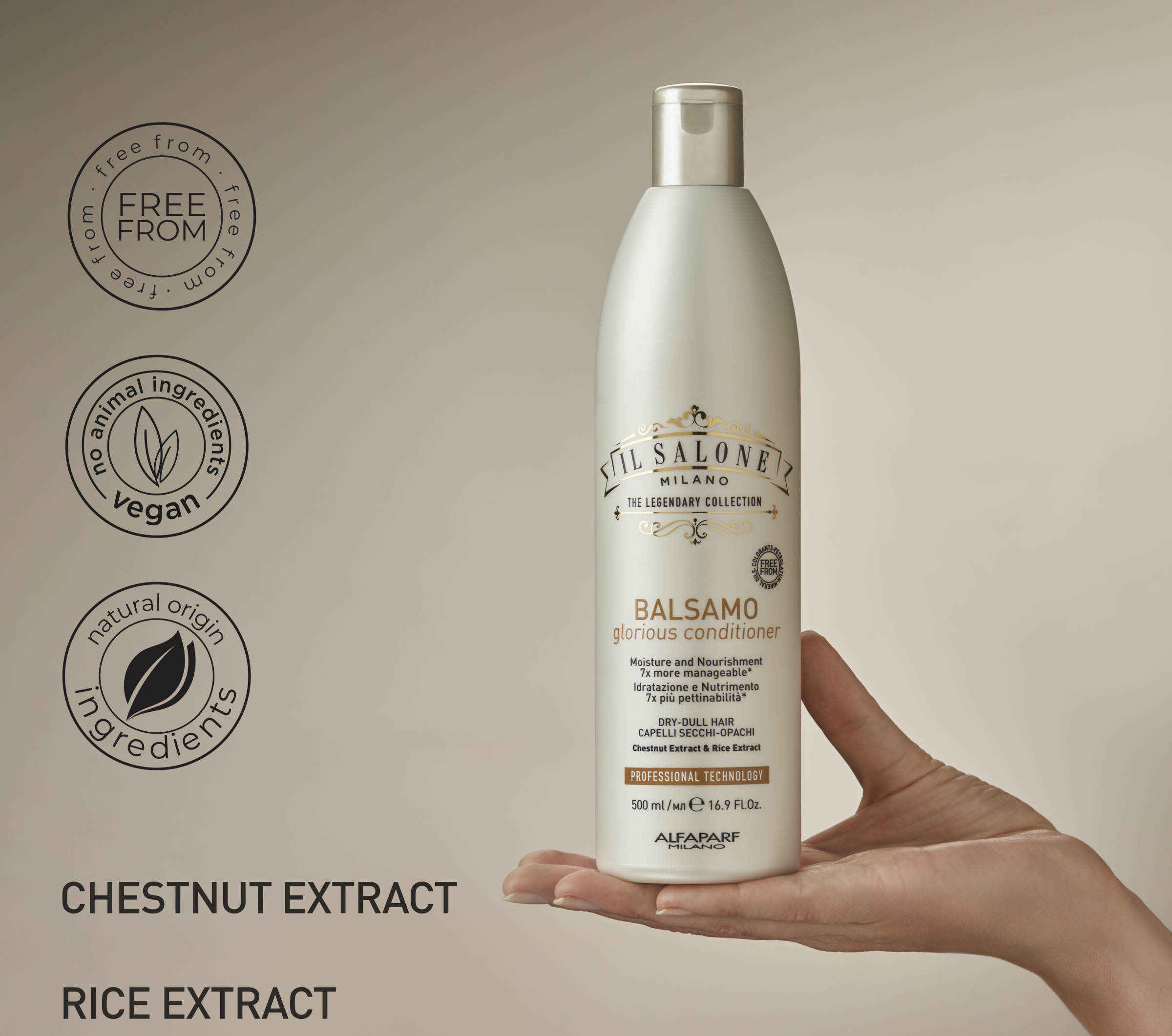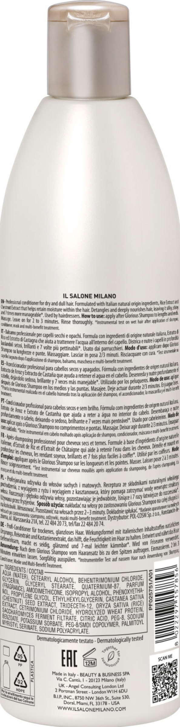 IL SALONE MILANO Glorious Conditioner. Professionelle Conditioner für trockenes und strapaziertes Haar. Mit Inhaltsstoffen natürlichen Ursprungs aus Italien. Reis- und Kastanienextrakt unterstützt die Feuchtigkeit im Haar zu speichern. Entwirrt und pflegt das Haar intensiv, macht es seidig, glänzend und 7-mal besser frisierbar*.Kastanienextrakt nährt, spendet Feuchtigkeit und repariert die Haaroberfläche. Hilft Feuchtigkeit im Haar zu speichern, ohne es zu beschweren.Die feuchtigkeitsspenden Eigenschaften des Reis-Extraktes verhindern den Feuchtigkeitsverlust des Haares.