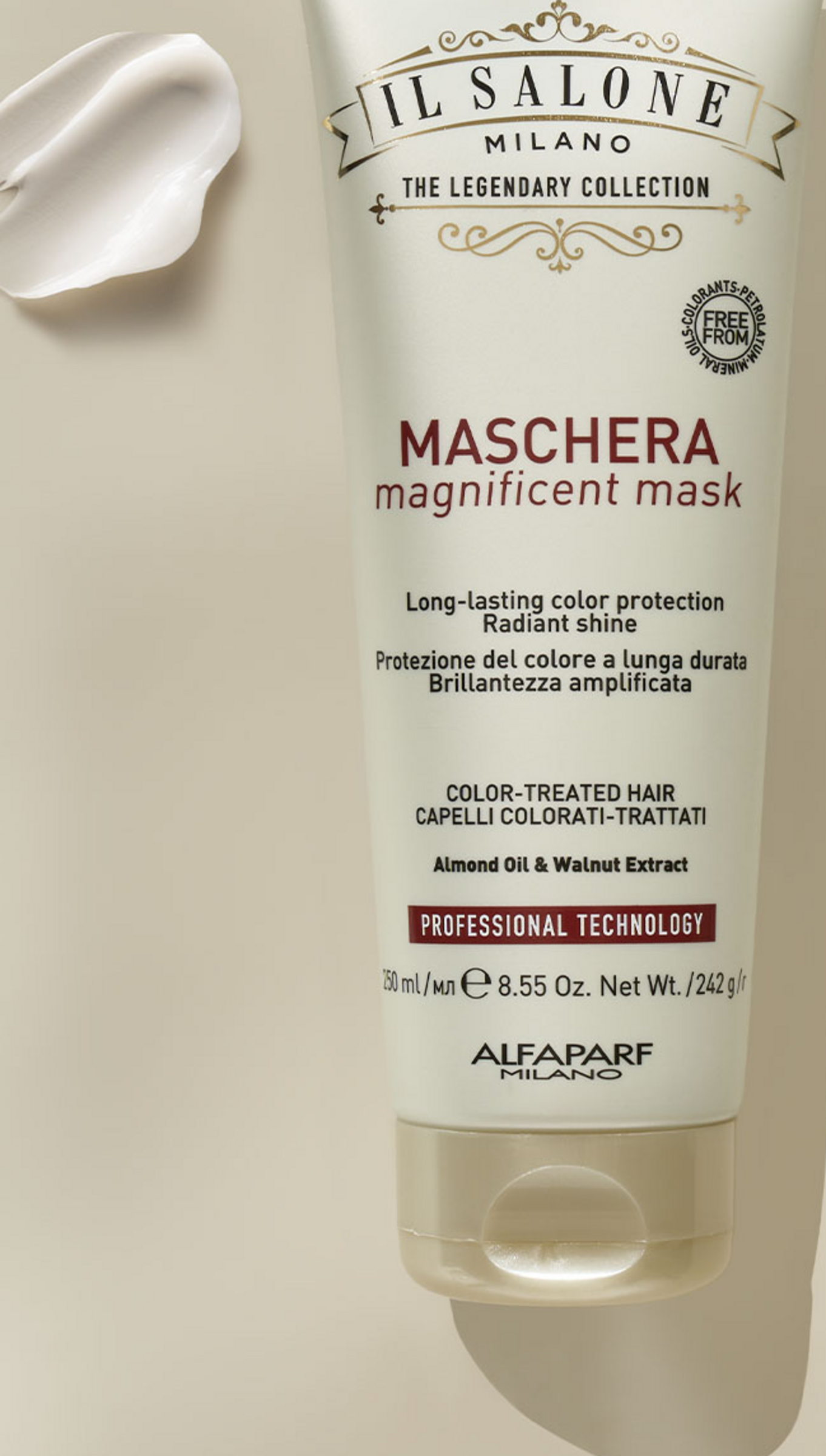 IL SALONE MILANO Magnificent Mask. Professionelle Maske für coloriertes Haar. Mit Inhaltsstoffen natürlichen Ursprungs aus Italien. Angereichert mit Walnuss-Extrakt und Mandelöl. Intensivbehandlung zur Verstärkung des Farbglanzes und für längeren Farberhalt. 95 % der Farbe bleiben nach 25 Haarwäschen erhalten*. Für glänzendes und seidiges Haar.Mit Mandelöl, das feuchtigkeitsspendende und schützende Eigenschaften hat. 100 % natürlichen Ursprungs. Mit Walnuss-Extrakt, einem starken Antioxidans, bietet einen wirksamen und lang anhaltenden Schutz vor Radikalen, die durch UV-Strahlung und Umweltverschmutzung verursacht werden.