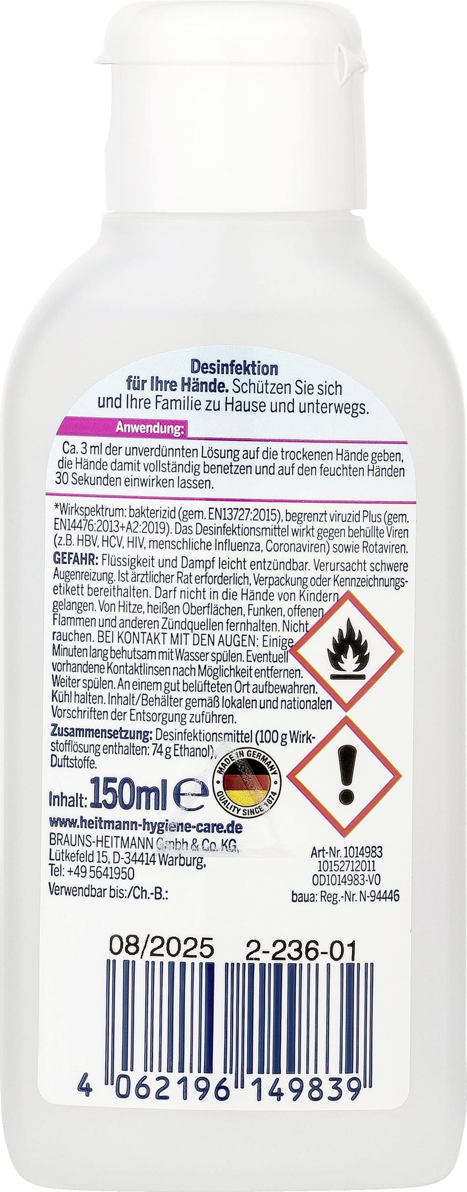 Desinfektionsmittel (100 g Wirkstofflösung enthalten: 74 g Ethanol), Duftstoffe.