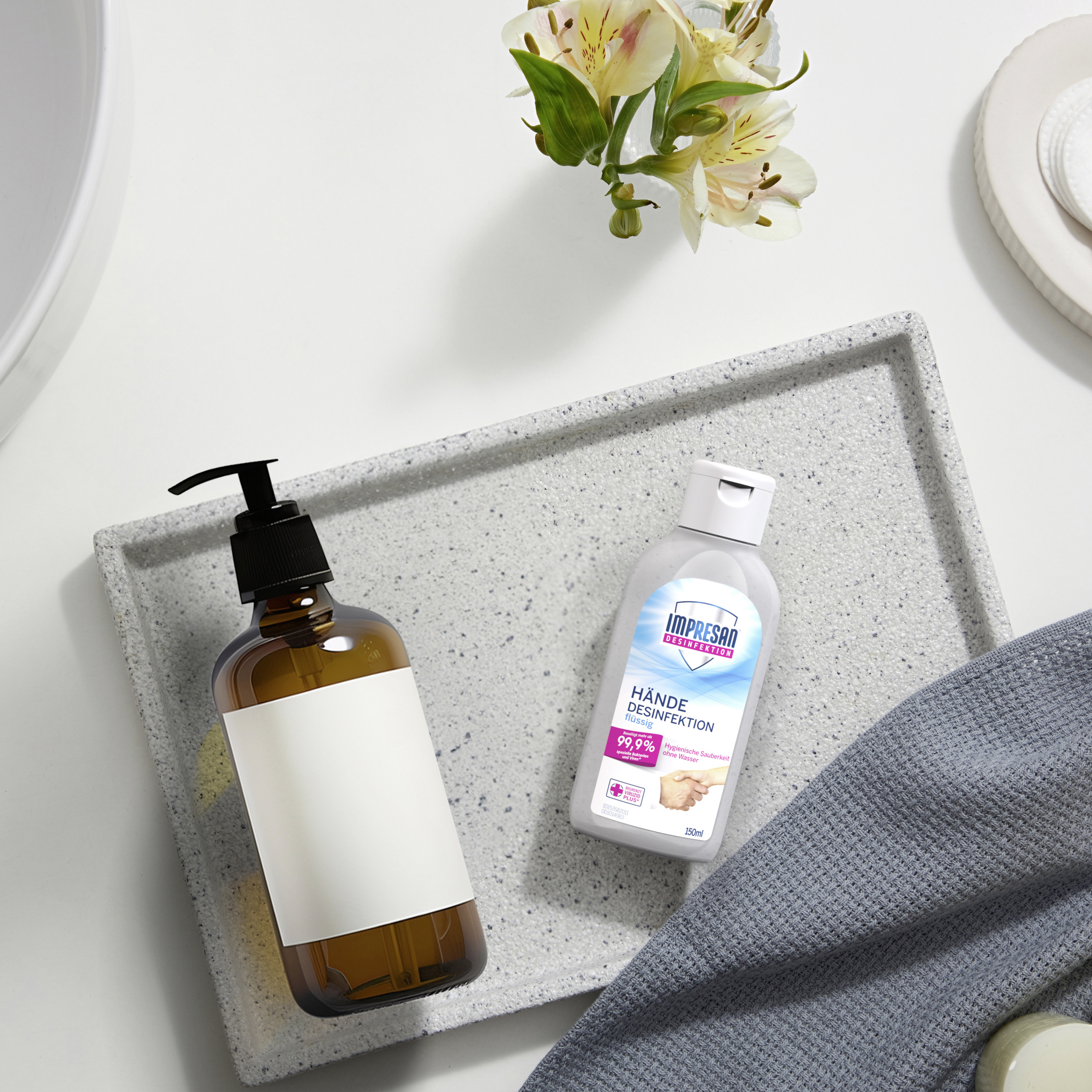 Keime werden besonders schnell über die Hände übertragen. Besonders verbreiten sich Keime an Gegenständen die oft und von unterschiedlichen Leuten angefasst werden. Mit der IMPRESAN Händedesinfektion schützen Sie sich und Ihre Familie vor speziellen Bakterien und Viren, egal ob zuhause oder unterwegs. Bei richtiger Anwendung desinfiziert die Händedesinfektion Ihre Hände bereits nach 30 Sekunden und beseitigt dabei mehr als 99,9 % spezieller Bakterien und Viren.