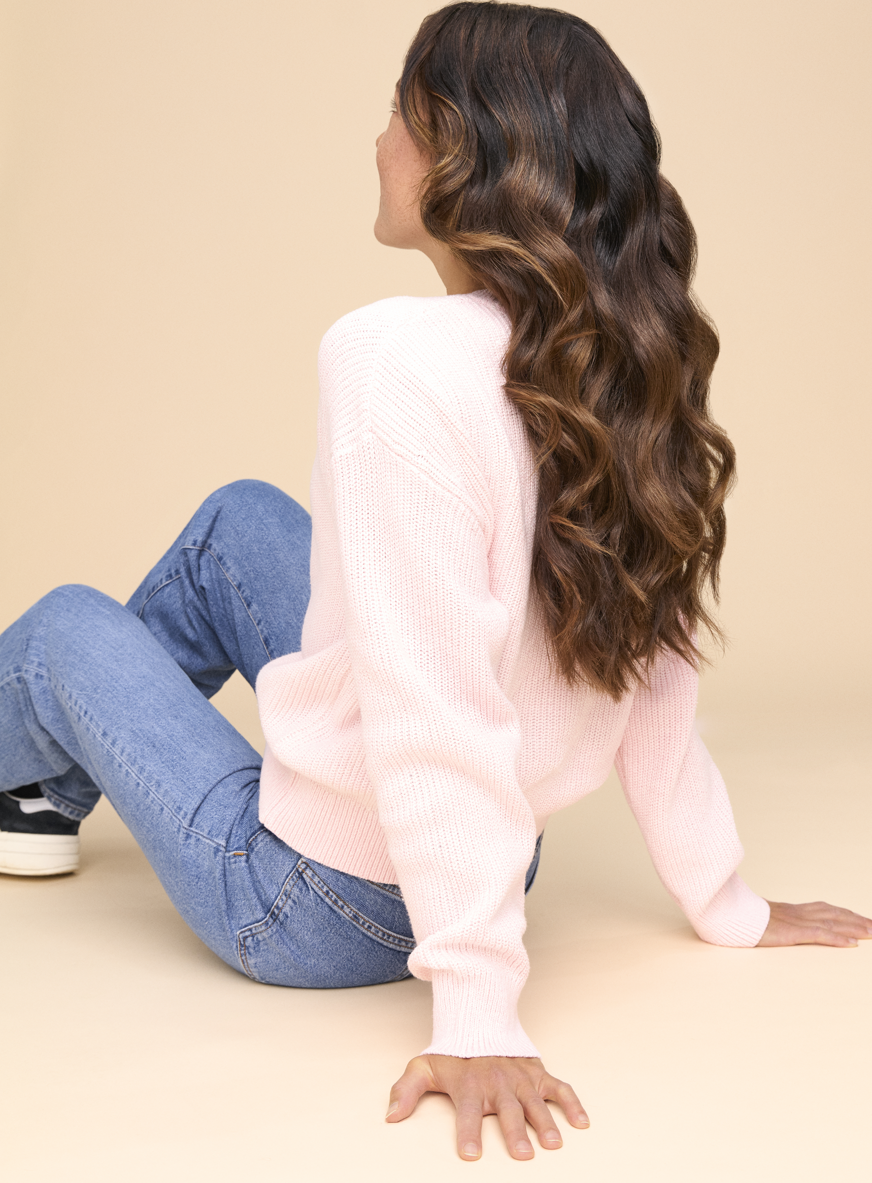 Beginnen Sie mit trockenem oder leicht feuchtem Haar. Kämmen Sie Ihr Haar und teilen Sie es nach Belieben in zwei gleiche Segmente.Platzieren Sie das Lockenband auf Ihrem Kopf und sichern Sie das erste Segment auf einer Seite mit einem SPRUNCHIE SLIM. Nehmen Sie eine kleine Strähne des anderen Segments und wickeln Sie sie vom Gesicht weg um das Band. Fahren Sie fort, weitere Haarsträhnen zu wickeln, bis Sie das gesamte Haarsegment um das Band gewickelt haben.Um den gelockten Look zu fixieren, sichern Sie das Ende des Bandes mit einem SPRUNCHIE SLIM. Wiederholen Sie die Schritte 3 und 4 für das andere Haarsegment.Sie sind fertig! Tragen Sie das Lockenband für ein paar Stunden oder über Nacht (für die besten Ergebnisse) und genießen Sie Ihre schönen, gesunden Locken!