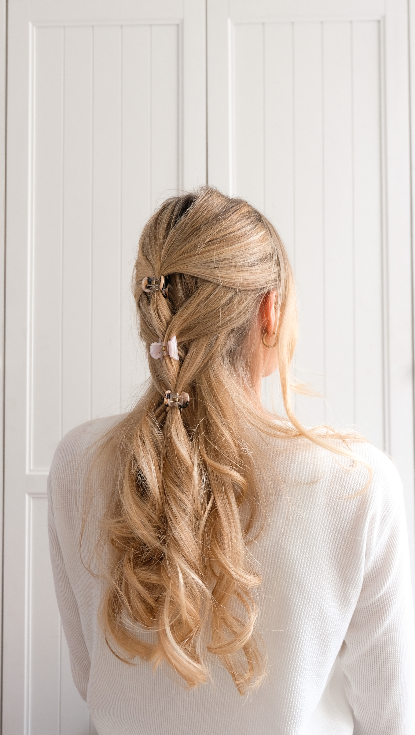 5. Anlegen: Setze die Spange an der gewünschten Stelle an und schiebe sie ins Haar.