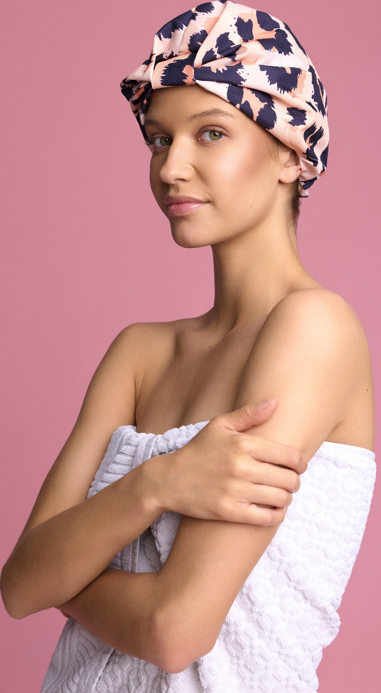 Entdecke die luxuriöse Duschhaube – das Must-have-Accessoire, um dein Haar vor Wasser und Feuchtigkeit zu schützen. Genieße ein Verwöhnerlebnis der Extraklasse mit dieser aus hochwertigem, wasserdichtem Material gefertigten Haube. Sie vereint Stil und Funktion und sorgt dafür, dass dein Haar geschützt und frei von Frizz bleibt – für einen selbstbewussten Auftritt nach jeder Dusche.