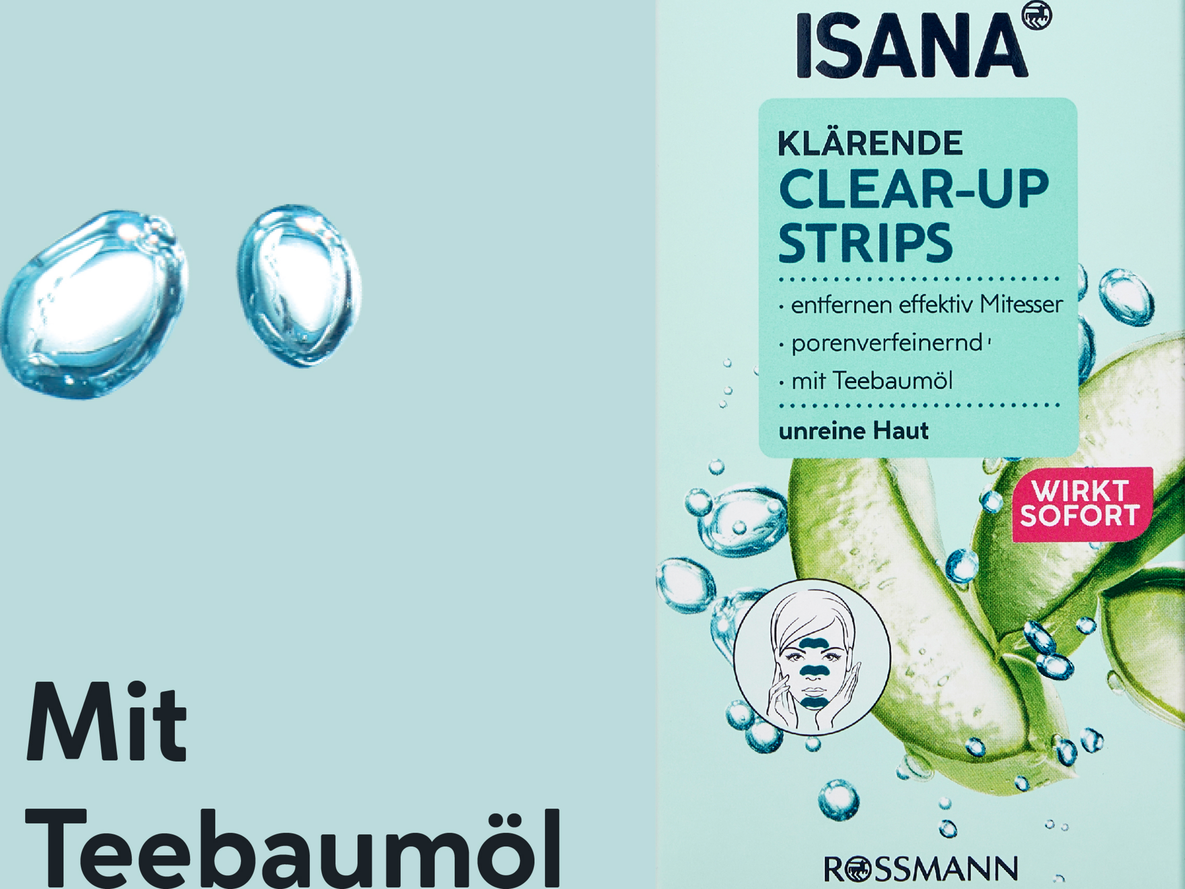 Die ISANA antibakteriellen Clear-up Strips schenken in Minuten sichtbar reinere Haut. Die Formel mit Teebaumöl befreit verstopfte Poren schnell und gründlich von Verunreinigungen und überschüssigem Hauttalg. Wirkt sofort. Porenverfeinernd. Mit Teebaumöl.
