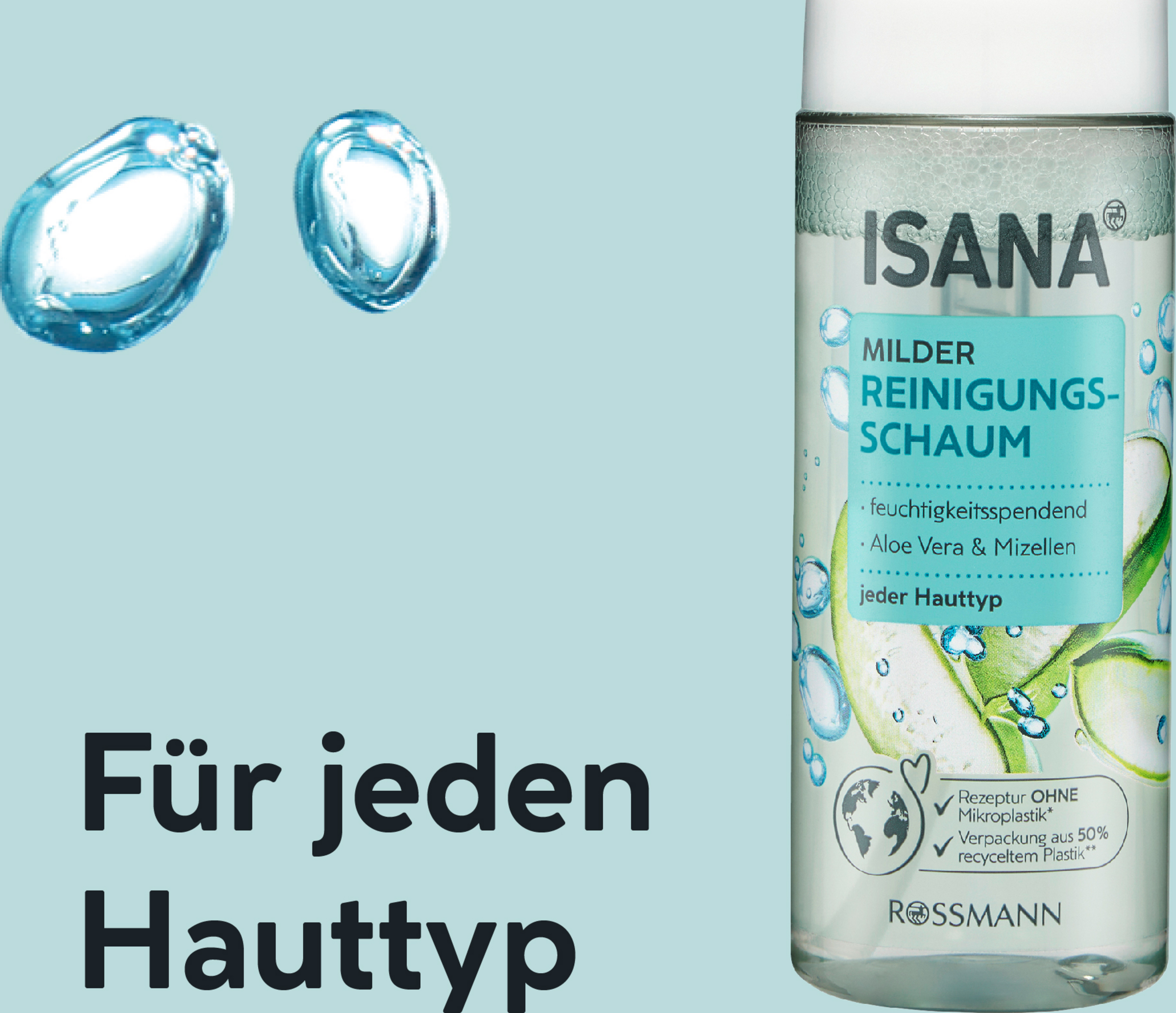 ISANA MILDER REINIGUNGSSCHAUM mit Aloe Vera und Gurken-Extrakt reinigt und pflegt die Haut.