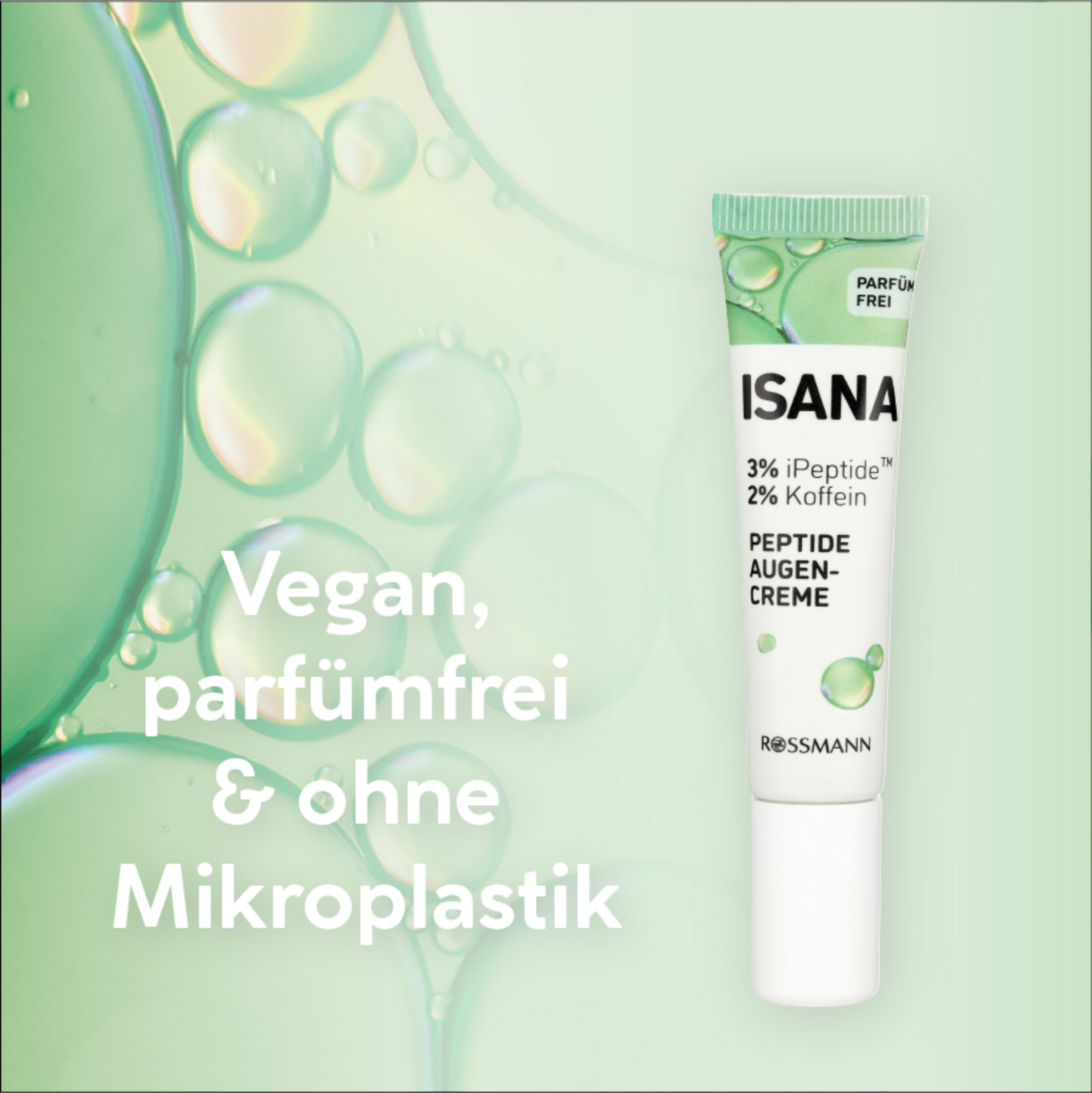 Die ISANA Peptide Augencreme besteht aus einem Wirkstoffkomplex mit: iPeptide (3%) mildert Anzeichen von Müdigkeit im Augenbereich und reduziert das Erscheinungsbild von Augenringen und Tränensäcken. Trägt zur Straffheit der Augenlider bei. Koffein (2%) wirkt antioxidativ, fördert die Mikrozirkulation der Haut und kann dadurch abschwellend bei Augenringen wirken. Glycerin (2%) spendet Feuchtigkeit und mildert feine Linien.