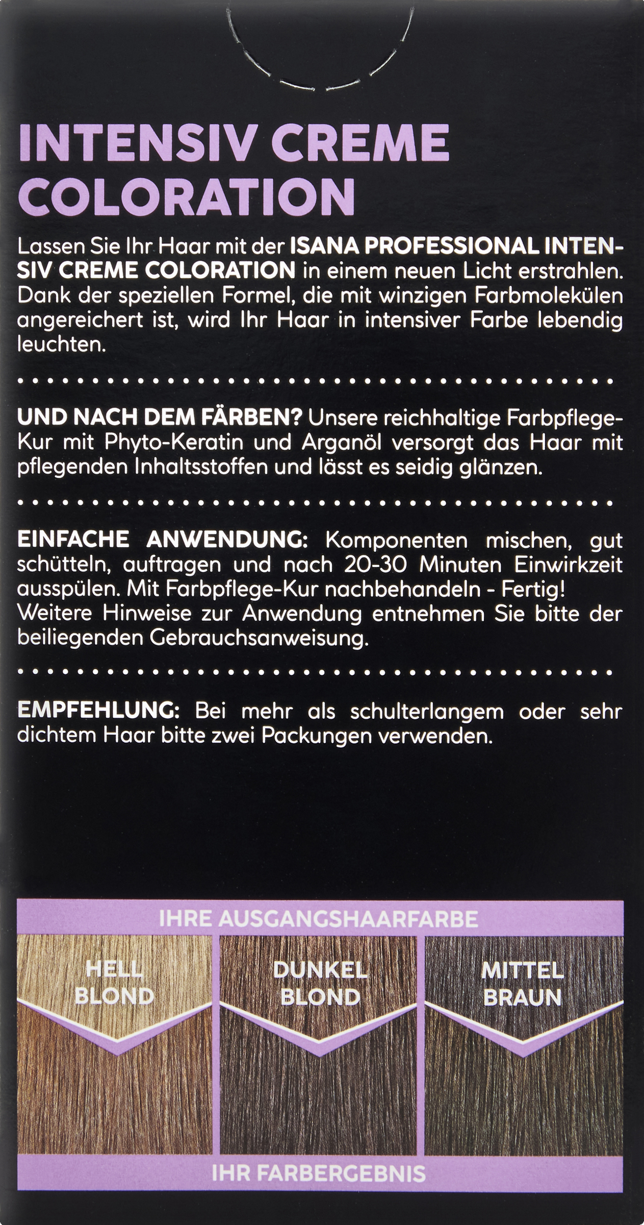 Empfehlung: Bei mehr als schulterlangem oder sehr dichtem Haar bitte zwei Packungen verwenden.