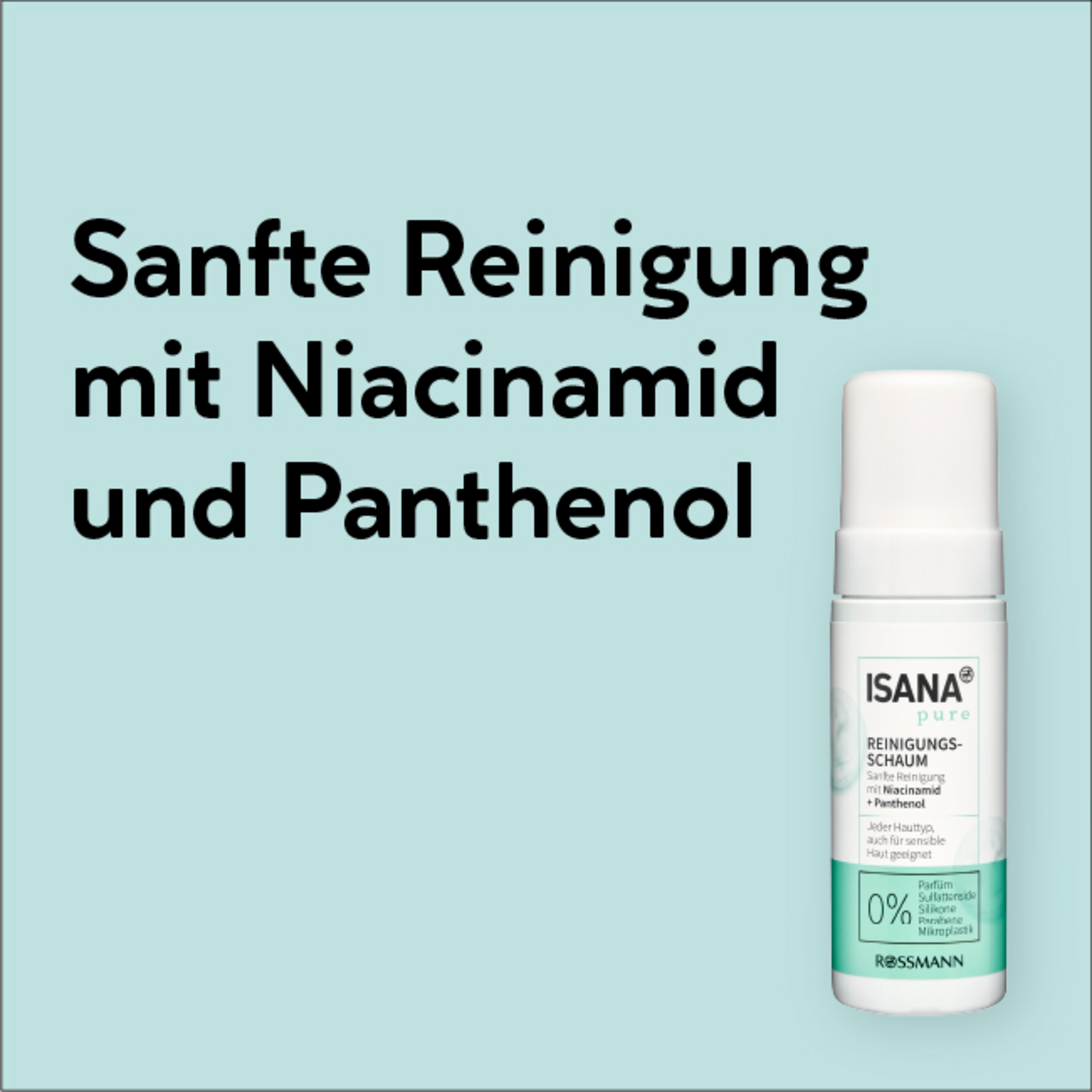 Der ISANA Reinigungsschaum Pure mit einem Vitamin Komplex aus Vitamin B3 (Niacinamid) & Pro-Vitamin B5 (Panthenol) befreit schonend und gründlich die Haut von Make-up und Schmutzpartikeln. Die milde Reinigungsformel ohne Parfüm belebt die Haut und ist selbst für empfindliche Hauttypen geeignet.