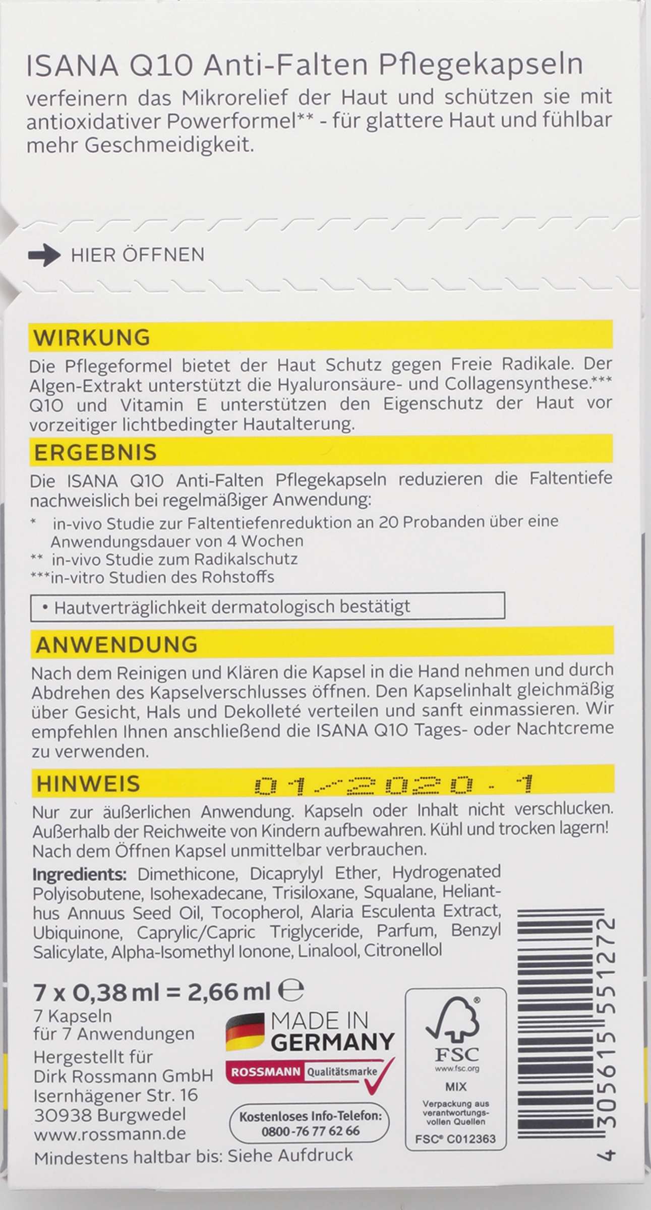 Ergebnis: Die ISANA Q10 Anti-Falten Pflegkapseln reduzieren nachweislich die Faltentiefe bei regelmäßiger Anwendung.