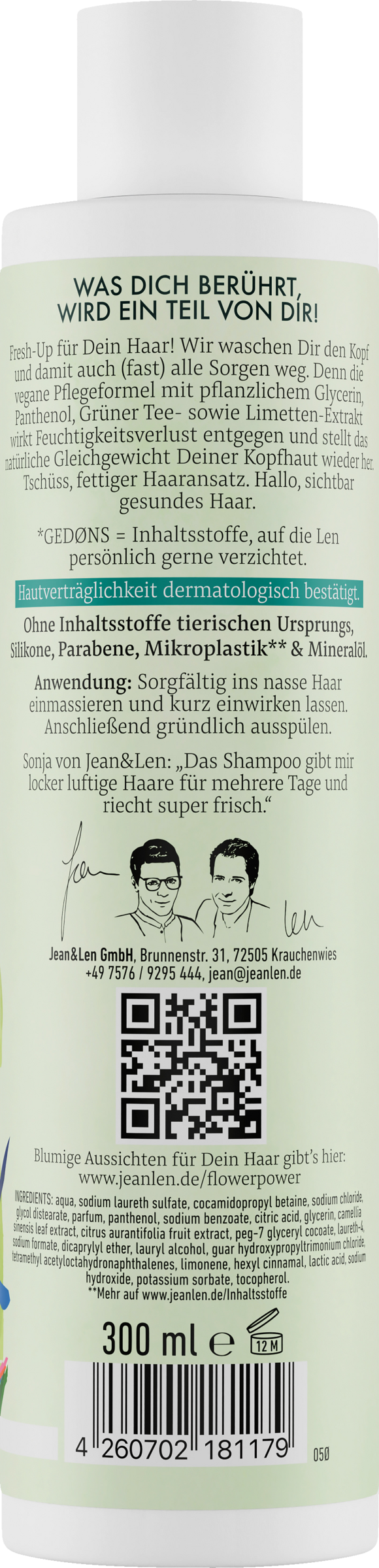 Die vegane Pflegeformel schützt Dein Haar vor Feuchtigkeitsverlust und stellt das Gleichgewicht Deiner Kopfhaut wieder her. Für den Frischekick sorgt eine Extraportion Grüner Tee- und Limettenextrakt.