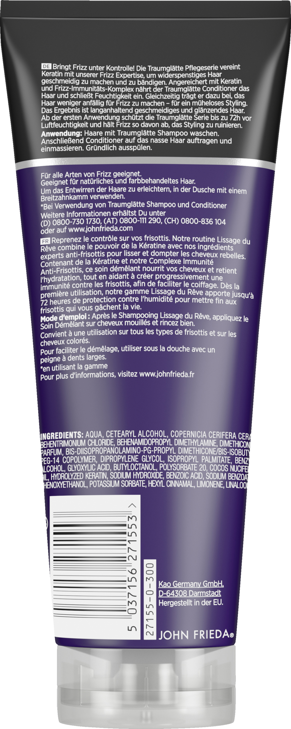Bringt Frizz unter Kontrolle! Die Traumglätte Pflegeserie vereint Keratin mit unserer Frizz Expertise, um widerspenstiges Haar geschmeidig zu machen und zu bändigen. Angereichert mit Keratin und Frizz-Immunitäts-Komplex nährt der Traumglätte Conditioner das Haar und schließt Feuchtigkeit ein. Gleichzeitig trägt er dazu bei, das Haar weniger anfällig für Frizz zu machen - für ein müheloses Styling. Das Ergebnis ist langanhaltend geschmeidiges und glänzendes Haar. Ab der ersten Anwendung schützt die Traumglätte Serie bis zu 72 h vor Luftfeuchtigkeit und hält Frizz so davon ab, das Styling zu ruinieren.