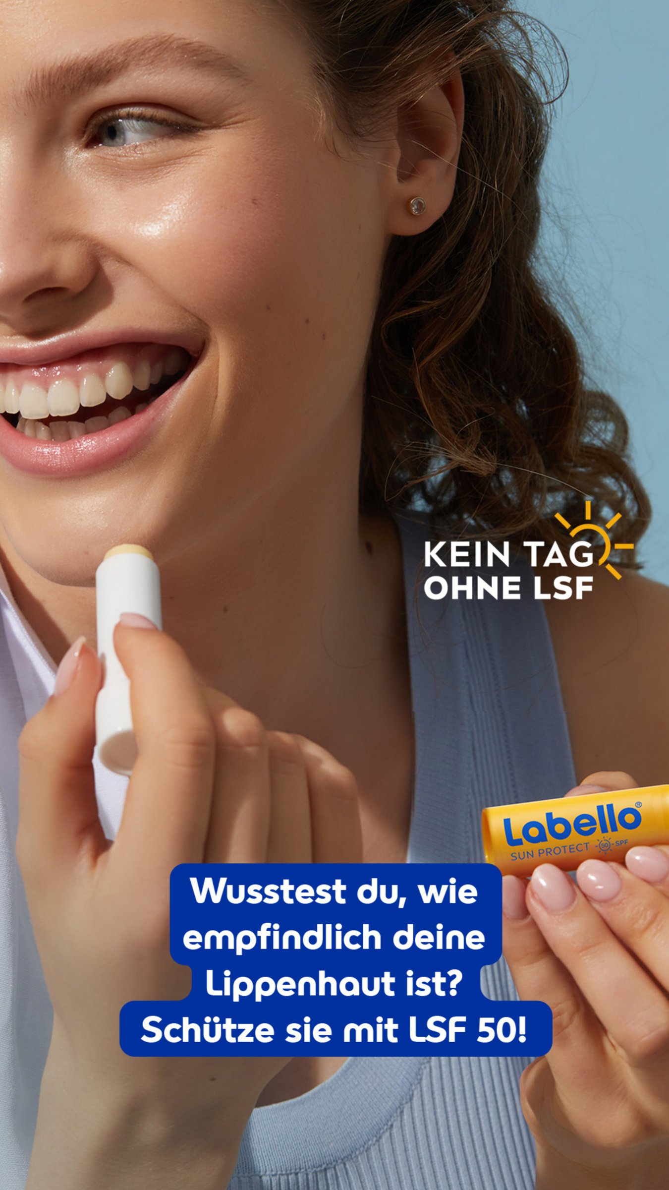 Wärmende Sonnenstrahlen bringen gute Laune, Gesundheit und ein allgemeines Wohlbefinden. Doch auch verschiedene Hautprobleme wie Hyperpigmentierung und einer vorzeitigen Hautalterung können durch die Wirkung von Sonnenstrahlen entstehen. Genieße unbeschwerte Momente in der Sonne mit geschützten und geschmeidigen Lippen dank des Labello Sun Protect LSF 50. Die Formel mit natürlichen Ölen und Sheabutter bietet effektiven Schutz vor Sonneneinstrahlung und spendet gleichzeitig intensive Pflege für deine Lippen.