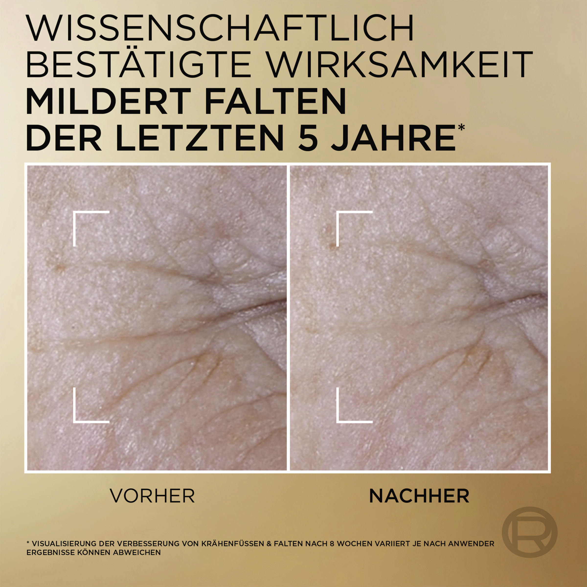 - nach 7 Tagen wirkt der Teint jugendlicher, straffer und aufgepolstert, Nach 4 Wochen ist die Ebenmäßigkeit im Hautton deutlich sichtbar