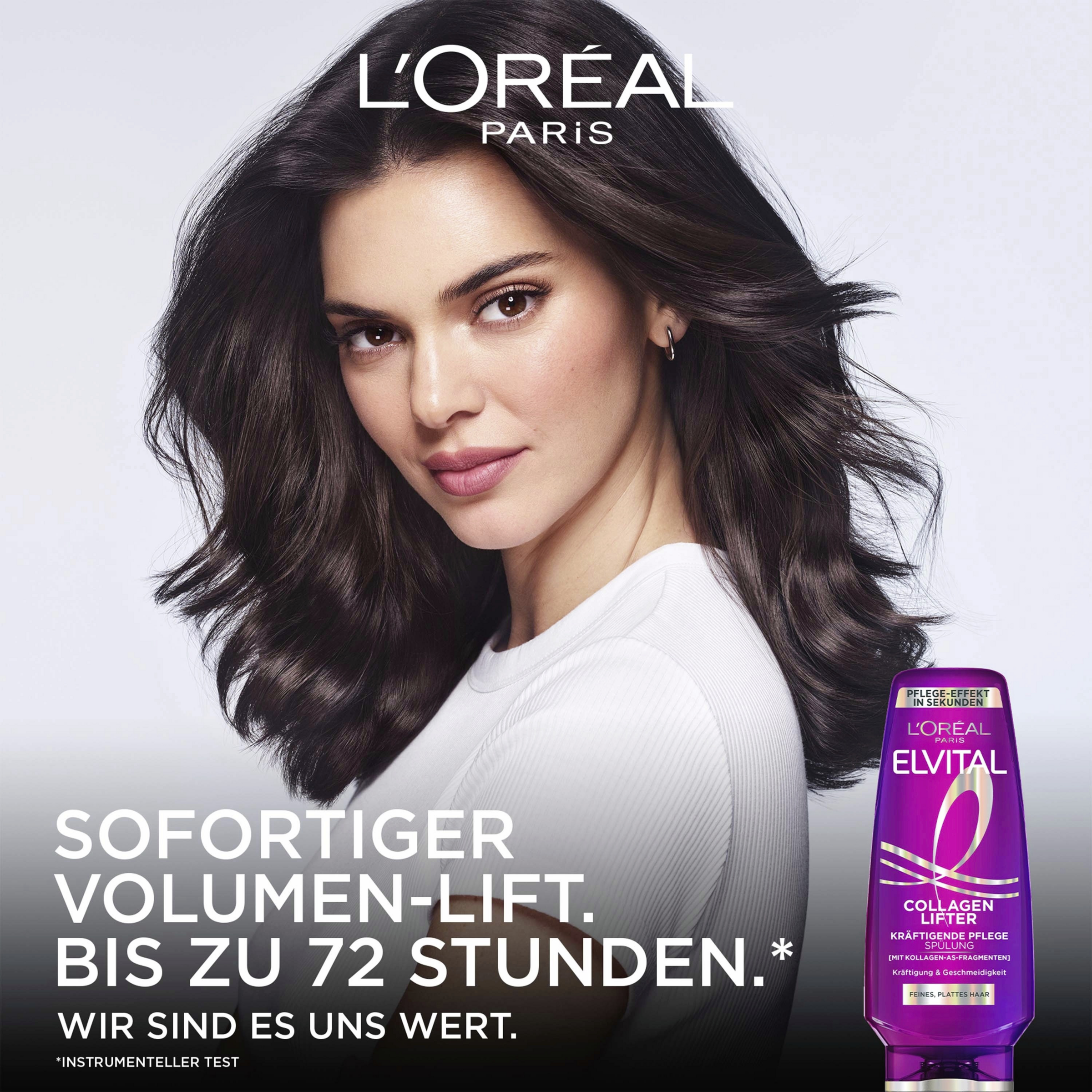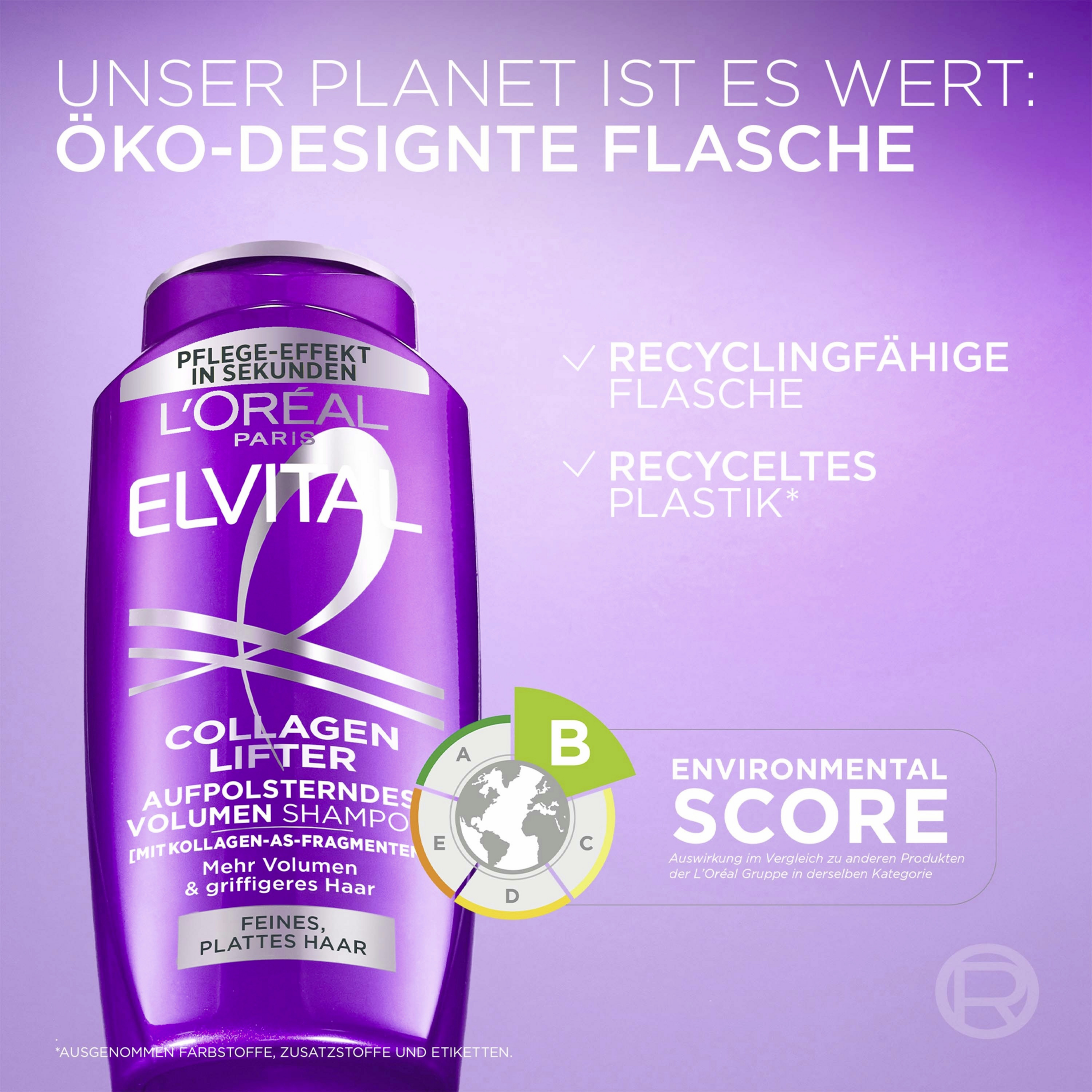 Elvital Collagen Lifter Kräfigende Pflegespülung liefert in Kombination mit Shampoo und Spray lang anhaltendes Volumen und Glanz. Cremige Formel, angereichert mit Kollagen-AS-Fragmenten, um den Ansatz zu liften und die volumisierende Wirksamkeit zu maximieren. Hydriert das Haar, während es kräftigt, ohne zu beschweren. Bietet mehr Volumen, das tagelang hält. Angereichert mit Birnen-, Zitrus- und Rosenduft für ein sinnliches Haarpflegeerlebnis. Einfache Anwendung: Auf nasses Haar auftragen, eine Minute einwirken lassen, gründlich ausspülen. Für optimale Ergebnisse verwende Elvital Collagen Lifter Shampoo und Volumen Spray. Ideal für feines oder plattes Haar, das Dicke, Weichheit und langanhaltendes Volumen benötigt.