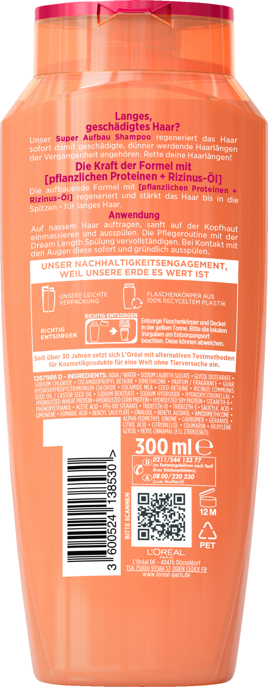 Das SUPER AUFBAU SHAMPOO mit PFLANZLICHEN PROTEINEN, VITAMINEN und RIZINUS-ÖL: REPARIERT das Haar bis in die Spitzen, STÄRKT die Haare, SPENDET FEUCHTIGKEIT und bringt das Haar zum Glänzen. Die Geheim-Formel für lange Haare.