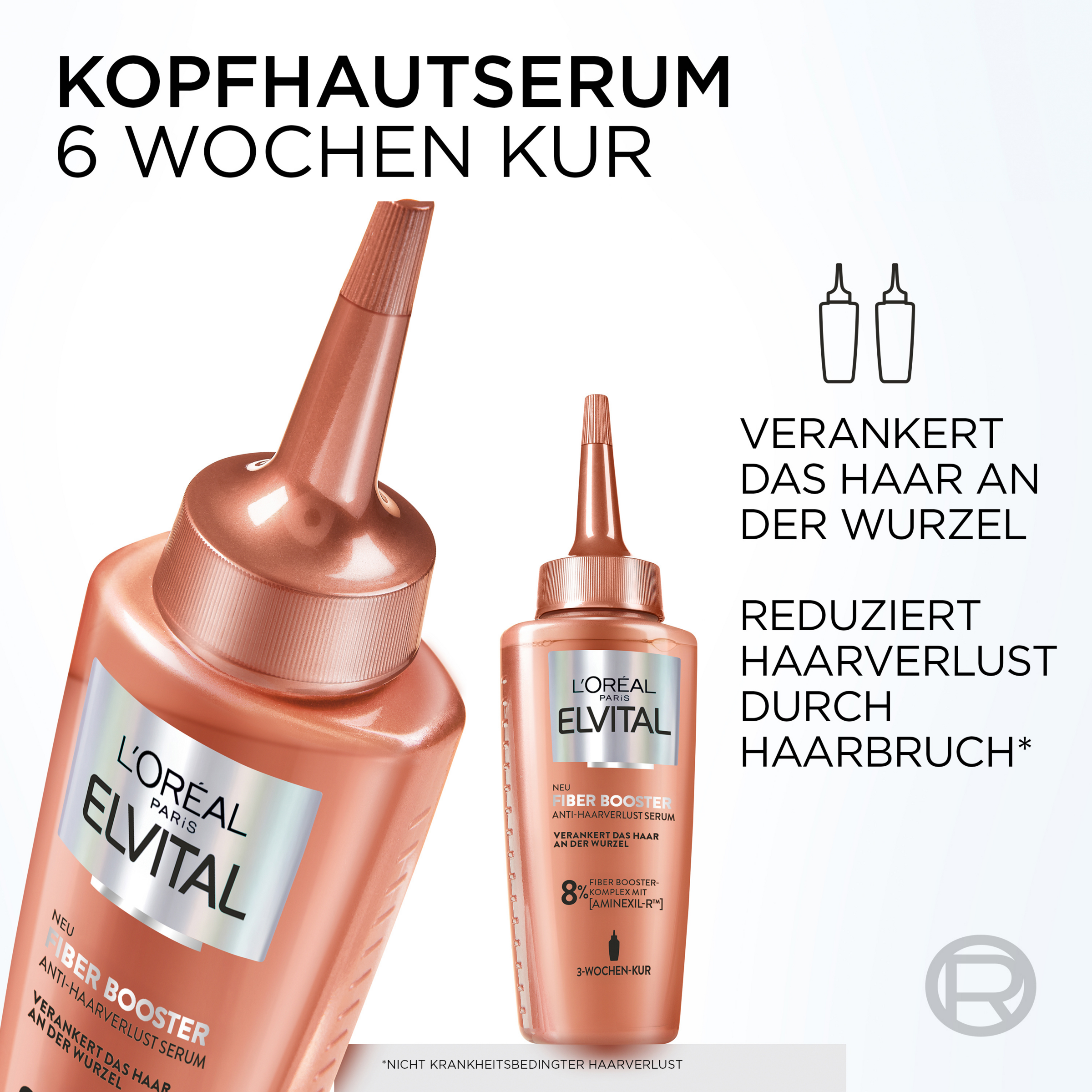 Das hochkonzentrierte Elvital Fiber Booster Serum von L’Oréal Paris reduziert Haarverlust und verankert das Haar an der Wurzel in einer 6-wöchigen Kur. Das Elvital Serum ist Bestandteil der 3-teiligen Elvital Fiber Booster Anti-Haarverlust Routine für volleres & stärkeres Haar. Die Routine mit dem innovativen Wirkstoffkomplex mit Aminexil-R, Gingerol und Niacinamid schafft optimale Wachstumsbedingungen auf der Kopfhaut und verlängert den Lebenszyklus der Haare.