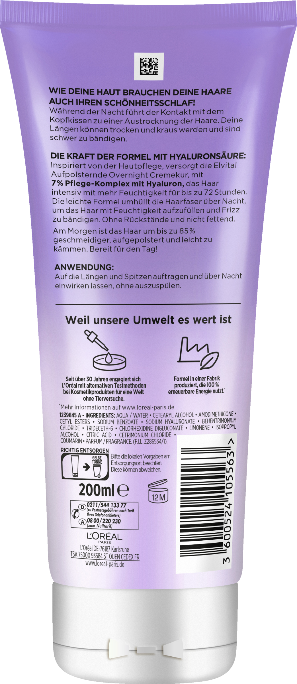 Wie deine Haut brauchen deine Haare auch ihren Schönheitsschlaf! Während der Nacht führt der Kontakt mit dem Kopfkissen zu einer Austrocknung der Haare. Deine Längen können trocken und kraus werden und sind schwer zu bändigen. Die Formel mit Hyaluronsäure versorgt das Haar intensiv mit mehr Feuchtigkeit für bis zu 72H. Die leichte Formel mit 7% Pflege-Komplex mit Hyaluron umhüllt die Haarfaser über Nacht, um das Haar mit Feuchtigkeit aufzufüllen und Frizz zu bändigen. Die Textur hinterlässt keine Rückstände und ist nicht fettend. Am Morgen ist das Haar um bis zu 85% geschmeidiger, aufgepolstert und leicht zu kämmen.