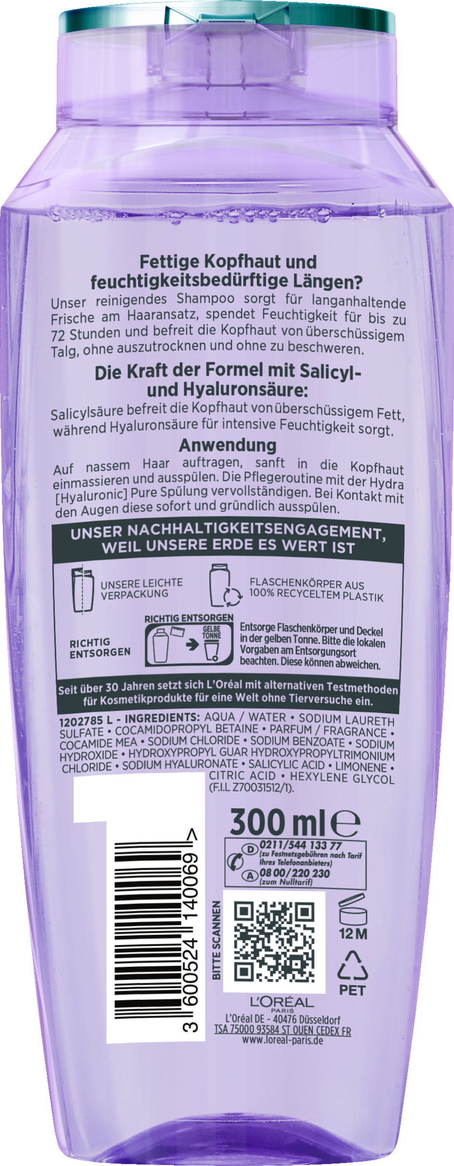 Fettige Kopfhaut und feuchtigkeitsbedürftige Längen? Das reinigende Shampoo sorgt für langanhaltende Frische am Haaransatz, spendet Feuchtigkeit für bis zu 72 Stunden in den Längen und befreit die Kopfhaut von überschüssigem Fett, ohne auszutrocknen und ohne zu beschweren.