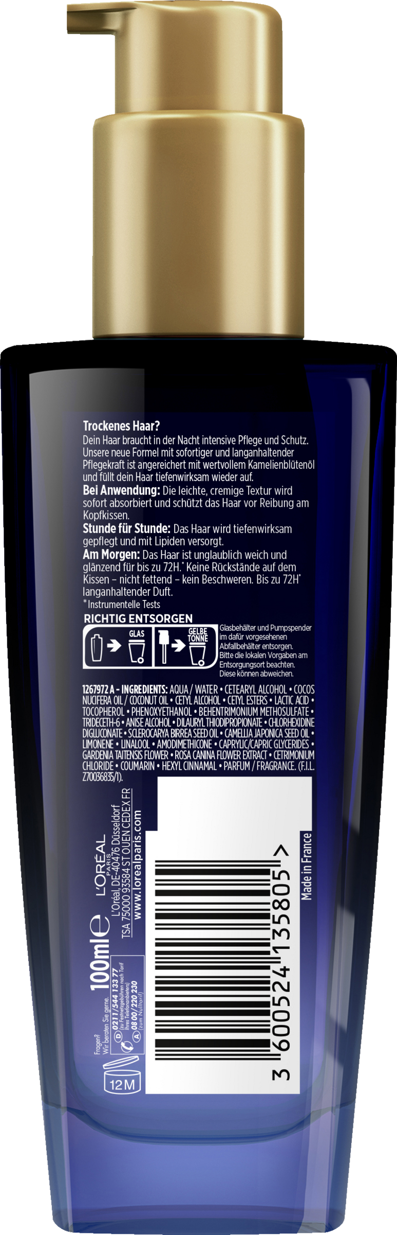 Für außergewöhnliches Haar direkt nach dem Aufwachen oder abends vor dem Schlafengehen auf das trockene oder nasse Haar auftragen. Nicht fettende Formel für ein sauberes Kopfkissen. Kein Ausspülen am Morgen erforderlich.