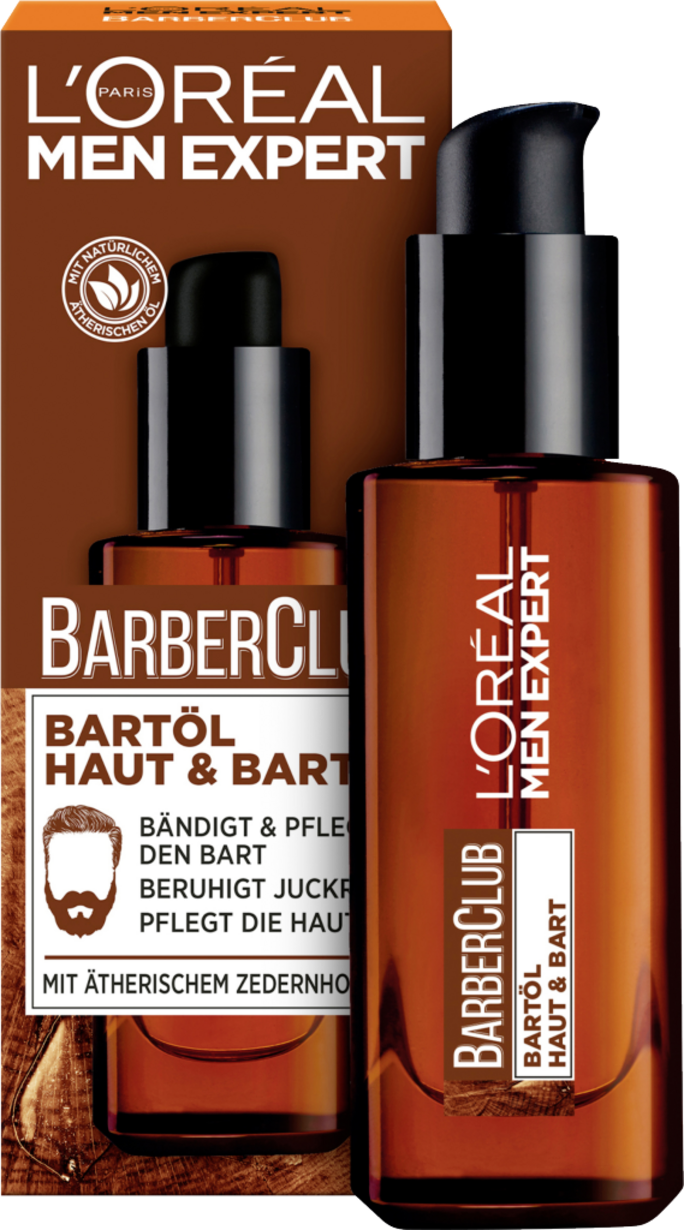 Das L'Oréal Paris Men Expert Barber Club Bartöl Haut und Bart mit ätherischem und organischem Zedernholzöl bietet tiefenwirksame Bart- und Hautpflege mit dem bekannten Barber Club Duft. Seine reichhaltige Formel entwirrt, kräftigt und pflegt den Bart bis in die Haarspitzen und schützt gleichzeitig vor Schuppen. Außerdem kräftigt und pflegt die Formel mit Zedernholzöl die Haut auch unter dem Vollbart und mildert den nach einer Rasur auftretenden Juckreiz. Das Bartöl ist für jeden Bart geeignet.