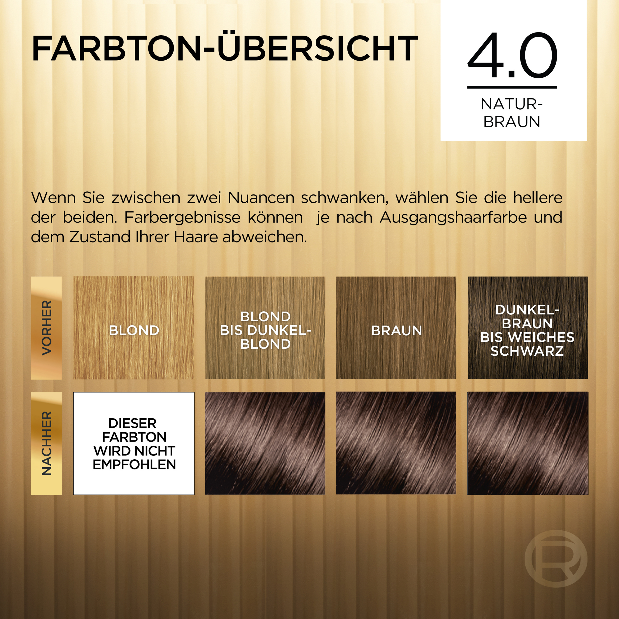 - Bestehend aus: 1x Flasche Colorations-Gel, 1x Anwendungsflasche mit Entwickler-Creme, 1x Tube Farbglanz-Pflegebalsam, 1x ÖlTropfen, 1x Gebrauchsanweisung, 1x Paar hochwertige Handschuhe