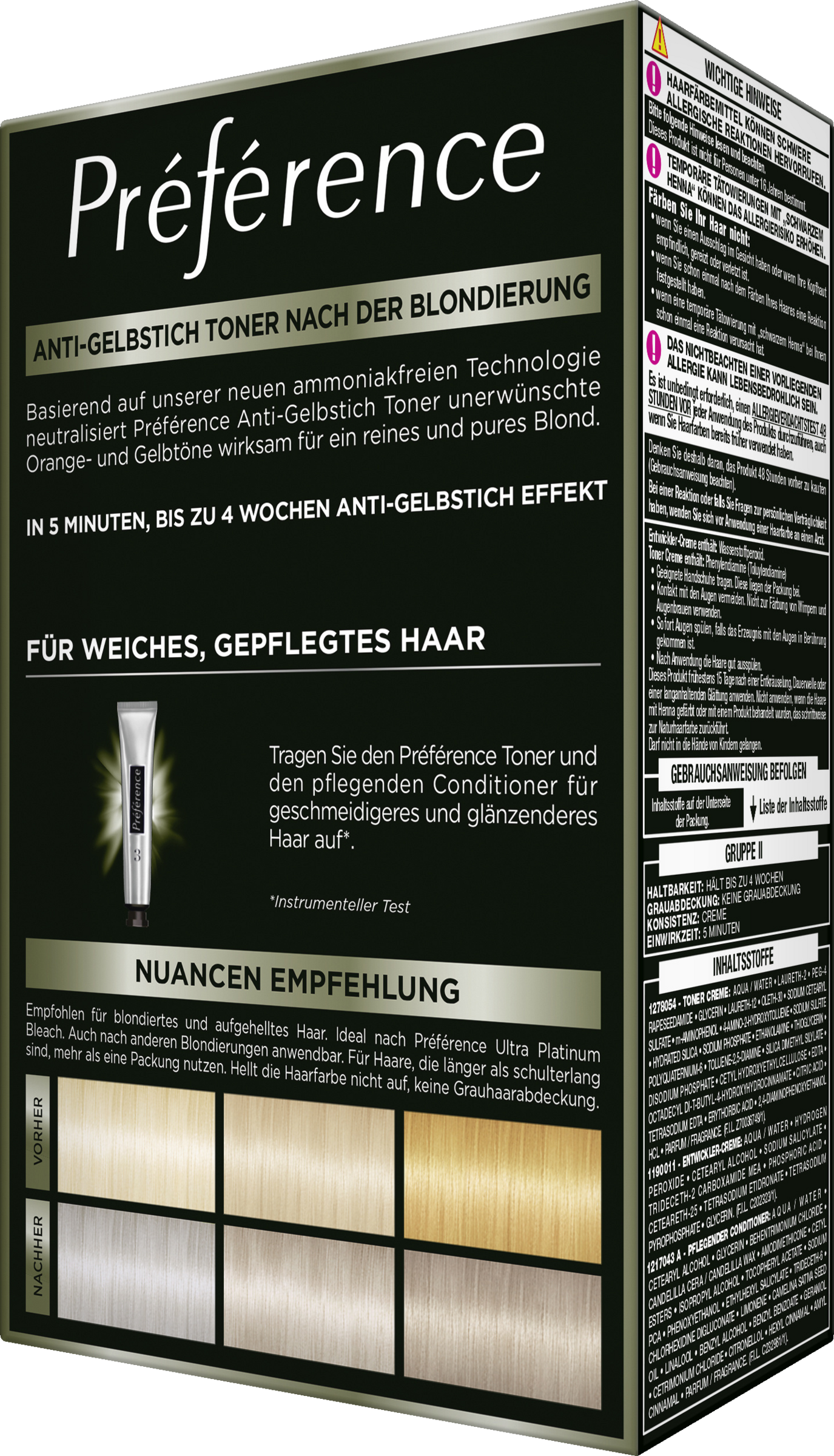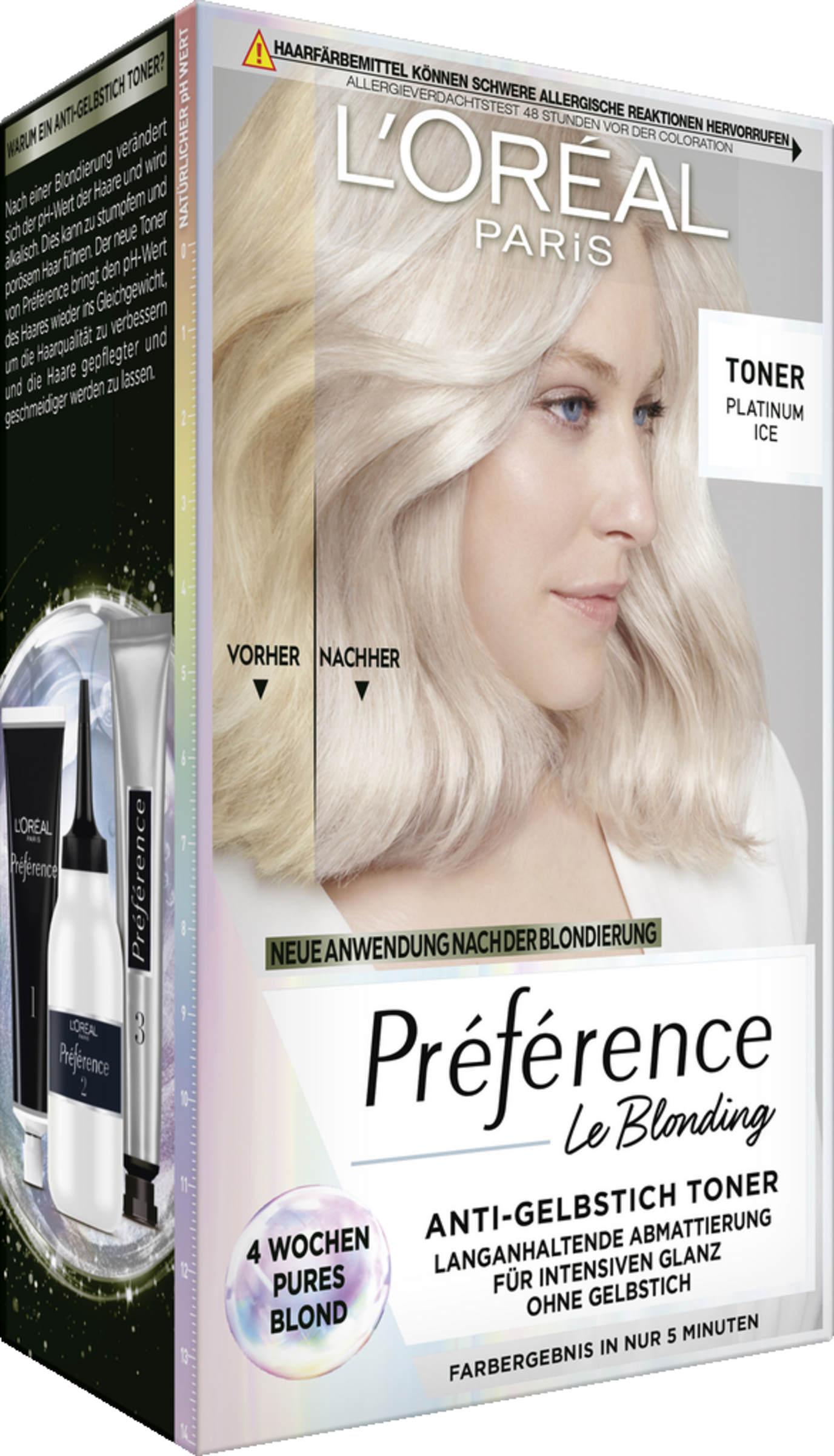 Anti Gelbstich Toner, langanhaltende Abmattierung für intensiven Glanz ohne Gelbstich.