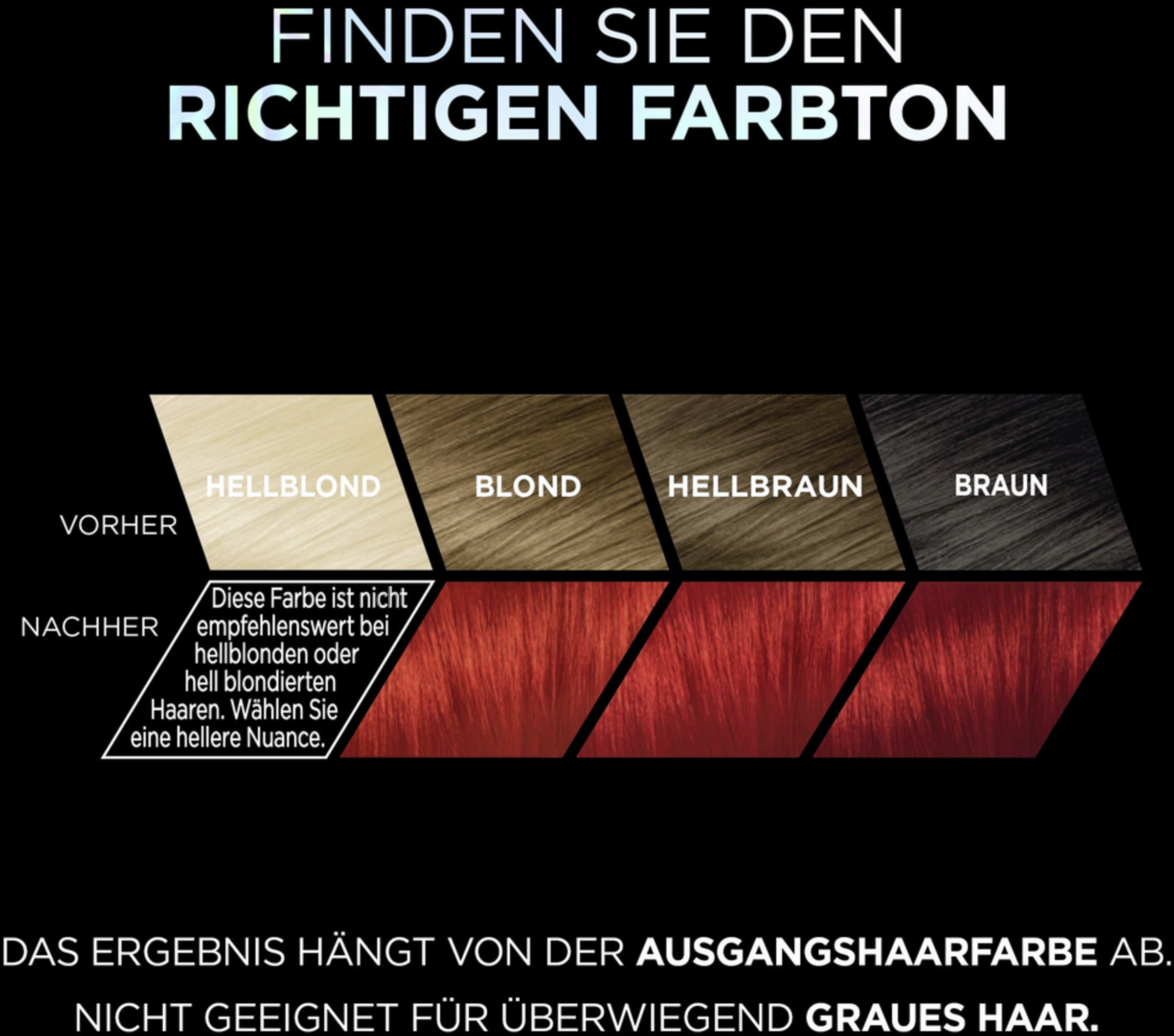 Das Nichtbeachten einer vorliegenden Allergie kann lebensbedrohlich sein. Es ist unbedingt erforderlich, einen Allergieverdachtstest 48 Stunden vor jeder Anwendung des Produkts durchzuführen, auch wenn Sie Haarfarben bereits früher verwendet haben. Denken Sie deshalb daran, das Produkt 48 Stunden vorher zu kaufen. (Gebrauchsanweisung beachten). Weitere wichtige Sicherheitshinweise entnehmen Sie bitte der Produktverpackung.