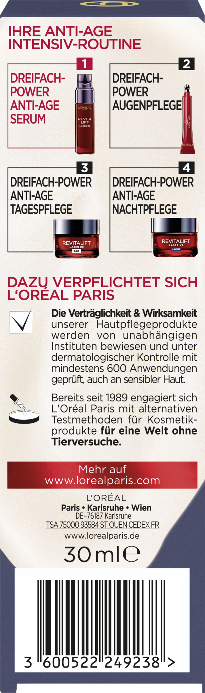 Entdecken Sie die tiefenwirksame Anti-Age Kraft: Revitalift Laser X3 Serum ist angereichert mit einer hohen Konzentration an Wirkstoffen für eine 3-fach Anti-Age Wirkung. L'Oréal Revitalift Laser X3 hochkonzentriertes Anti-Age Serum mildert sanft und sichtbar Falten und verfeinert nach und nach die Hautstruktur, indem sie nachhaltig gepflegt und wieder aufgebaut wird, so dass sie frisch und belebt erscheint.