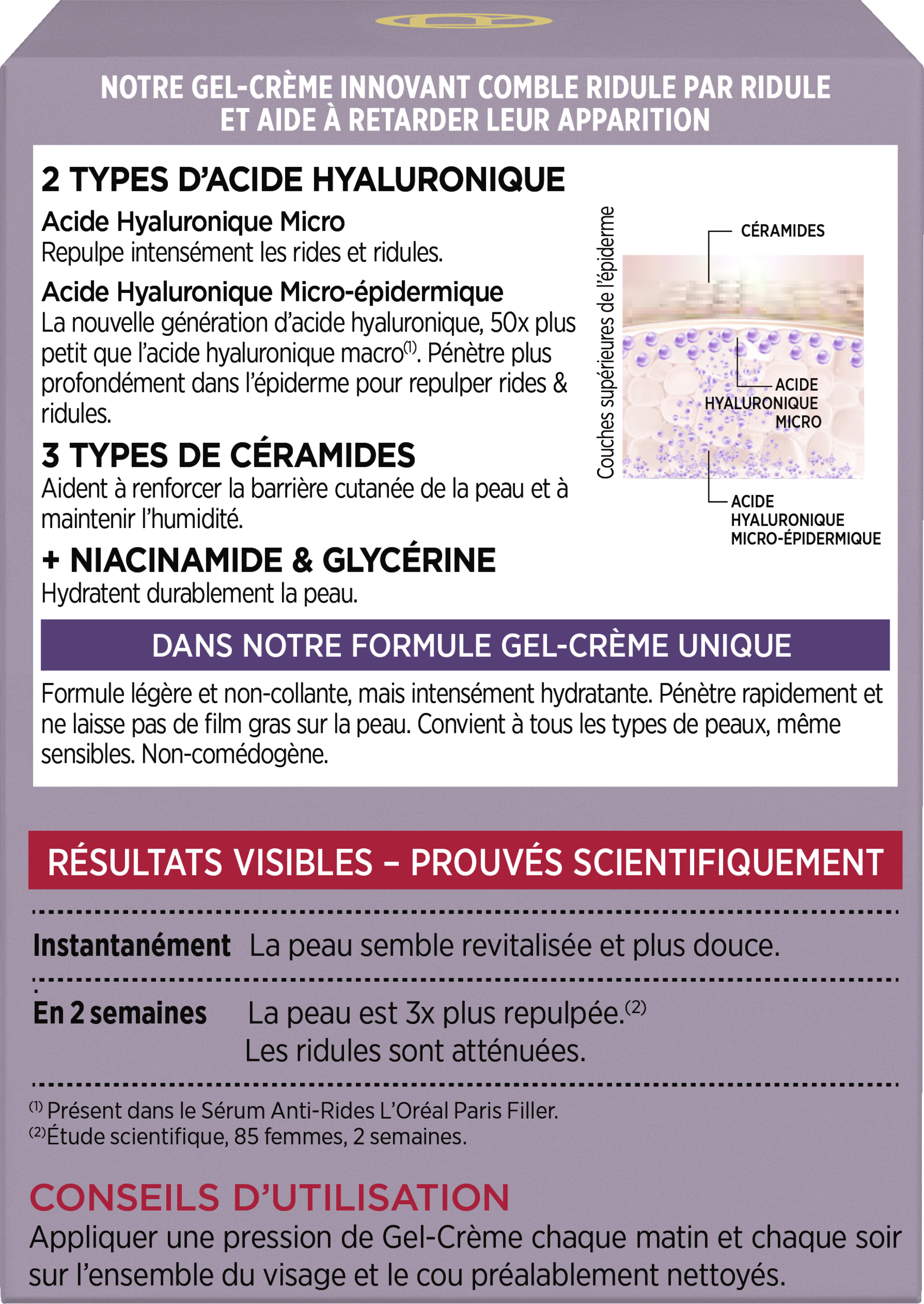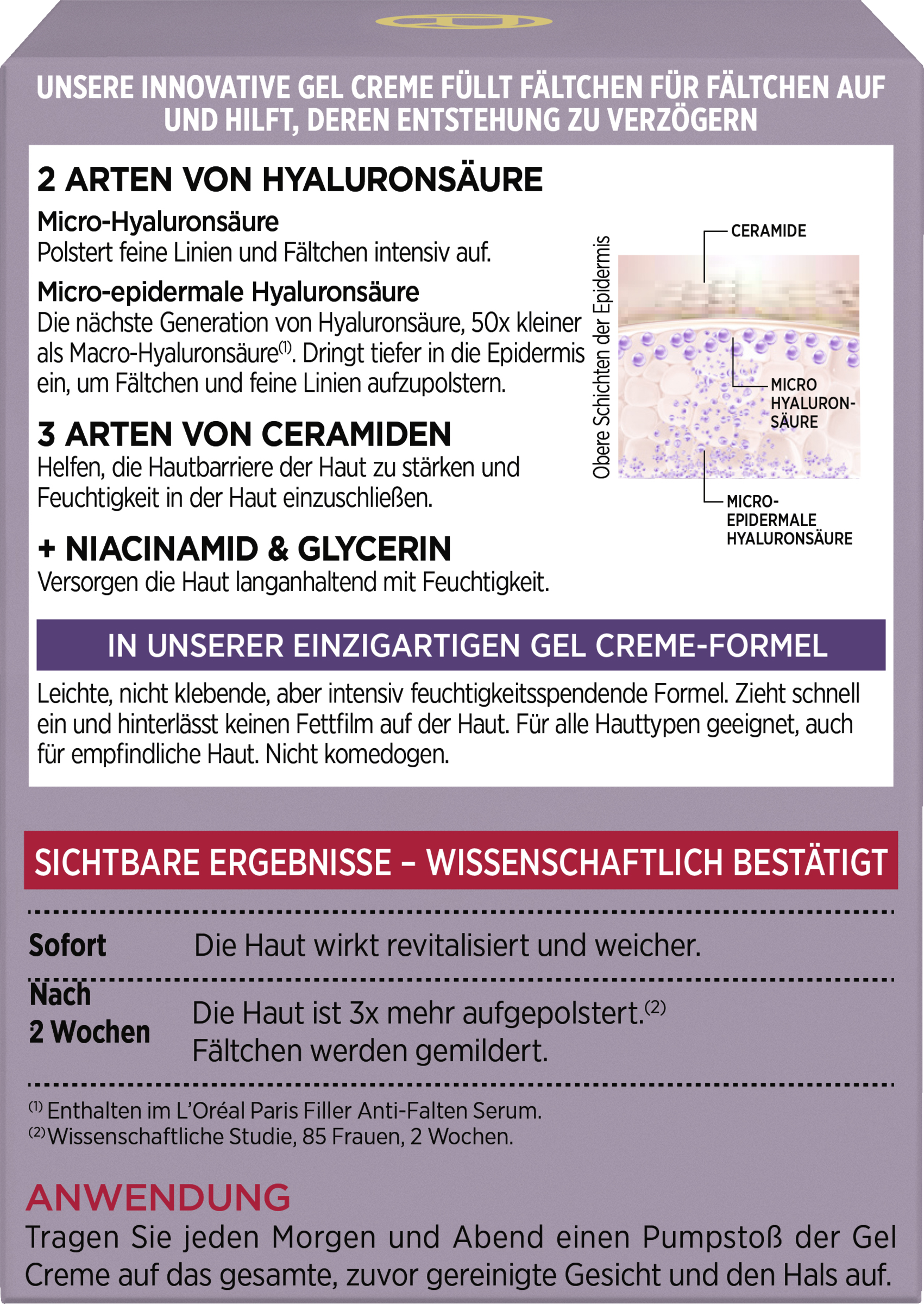 - Wirkung nach 2 Wochen - die Haut ist 3x mehr aufgepolstert. Fältchen werden gemildert
