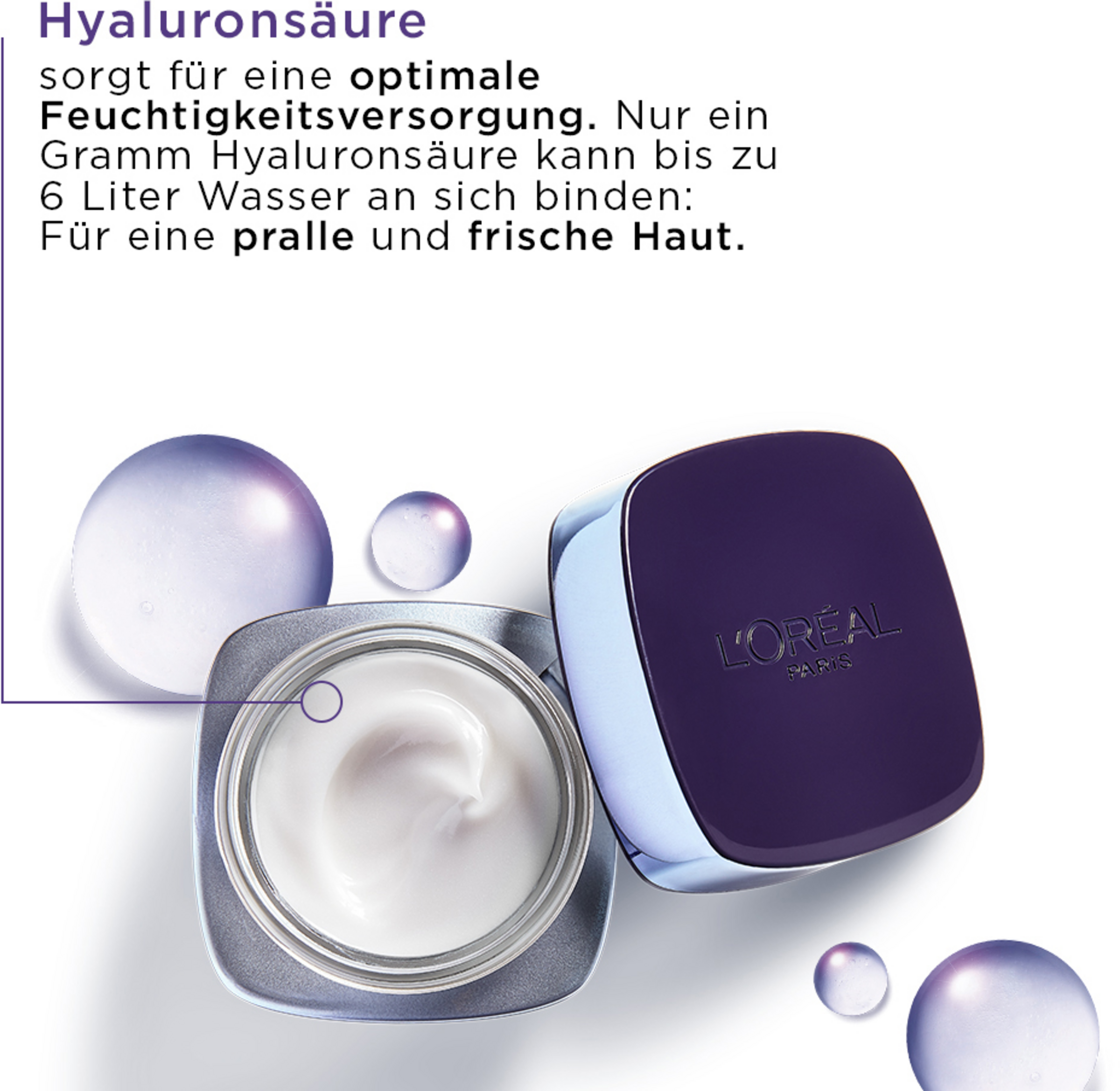 Mit dem Alter wirkt die Haut müde, verknittert, in sich zusammengesackt, denn im Alterungsprozess nimmt der natürliche Hyaluronsäuregehalt stetig ab. Die Haut erschlafft und verliert an Spannkraft. L'Oréal Paris REVITALIFT FILLER[+Hyaluronsäure] Aufpolsternde Anti-Age Tagespflege, mit drei Arten purer Hyaluronsäure [HA] wirkt den Zeichen des Alterns entgegen und sorgt für sichtbar prallere Haut.