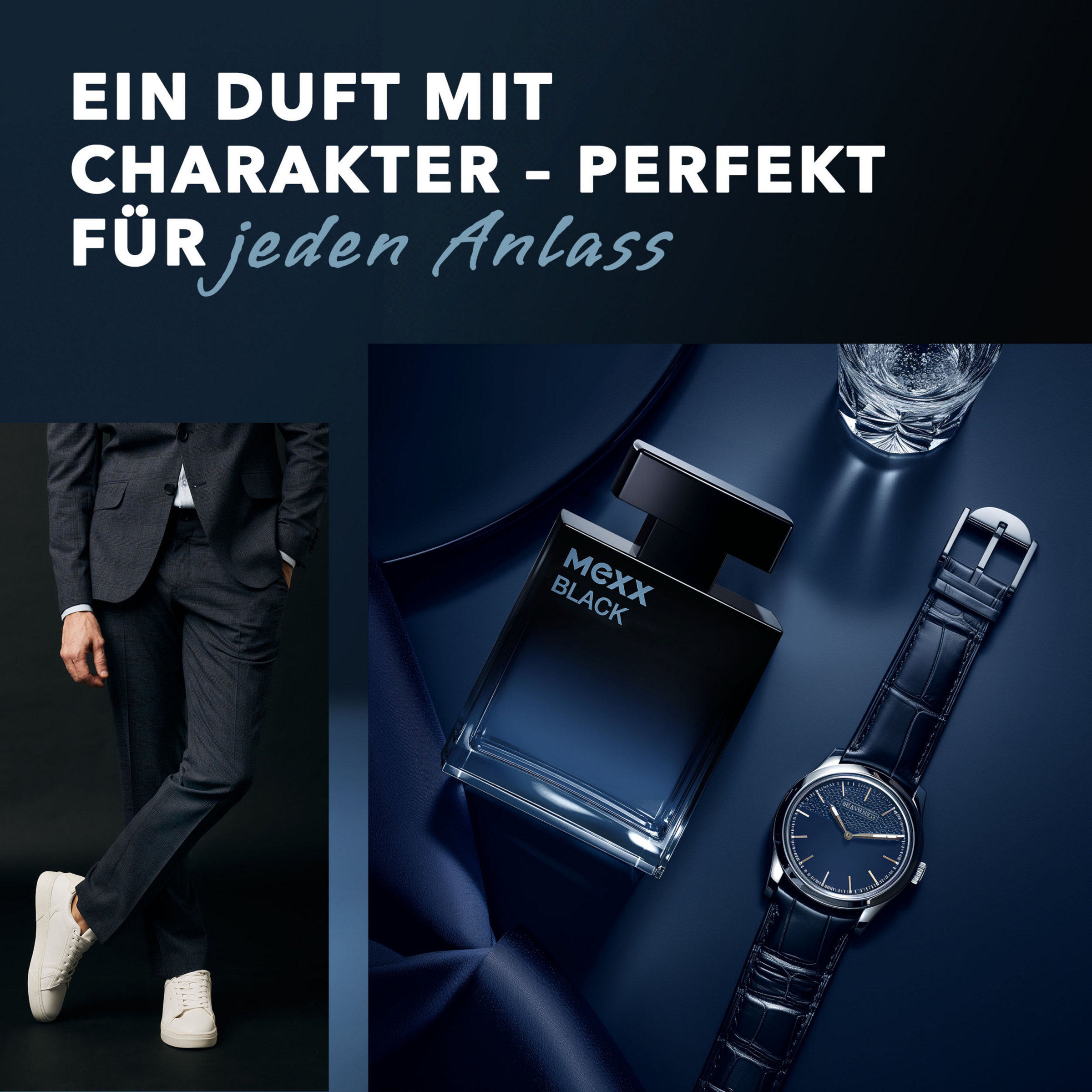 Verführerische Sinnlichkeit und maskuline Eleganz: Das Mexx Black Man Eau de Toilette ist ein faszinierend-intensiver Duft für Männer aus holzigen und aquatischen Noten. Die unwiderstehliche Komposition beginnt mit einem belebenden Hauch von aquatischen Akkorden, schwarzem Pfeffer und spritziger Mandarine. In der Herznote dominiert der frische Duft von Seerose, die mit der sanften Wärme von Zedernholz verschmilzt. Der würzige Duft von Patchouli, Sandelholz und Amber bildet die erdig-harzige Basis. Das verführerisch-intensive Mexx Black Man Eau de Toilette passt zu jeder Gelegenheit und eignet sich besonders für einen aufregenden Abend. Die Duftkomposition überzeugt mit neuer, veganer Formel und reduzierter Verpackung mit FSC-zertifizierten Materialien. In dem eleganten, rechteckigen Glasflakon mit schwarzen Ombre-Design kommt der betörende Duft besonders gut zur Geltung.