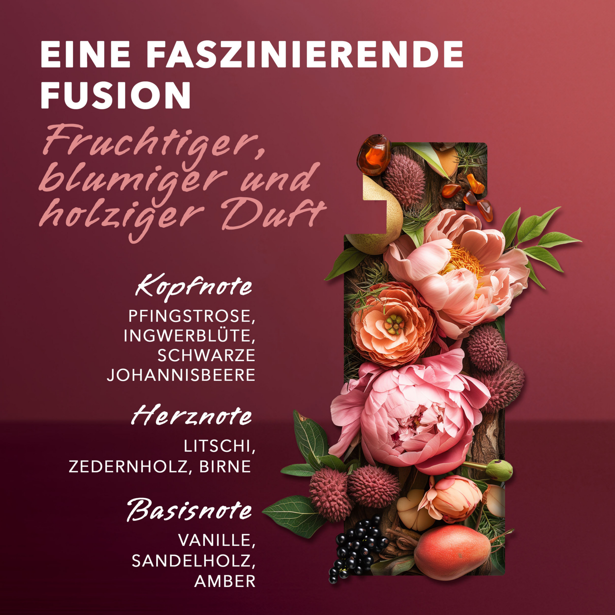 - Basisnote: Lotus-Akkord, Sandelholz, Amber