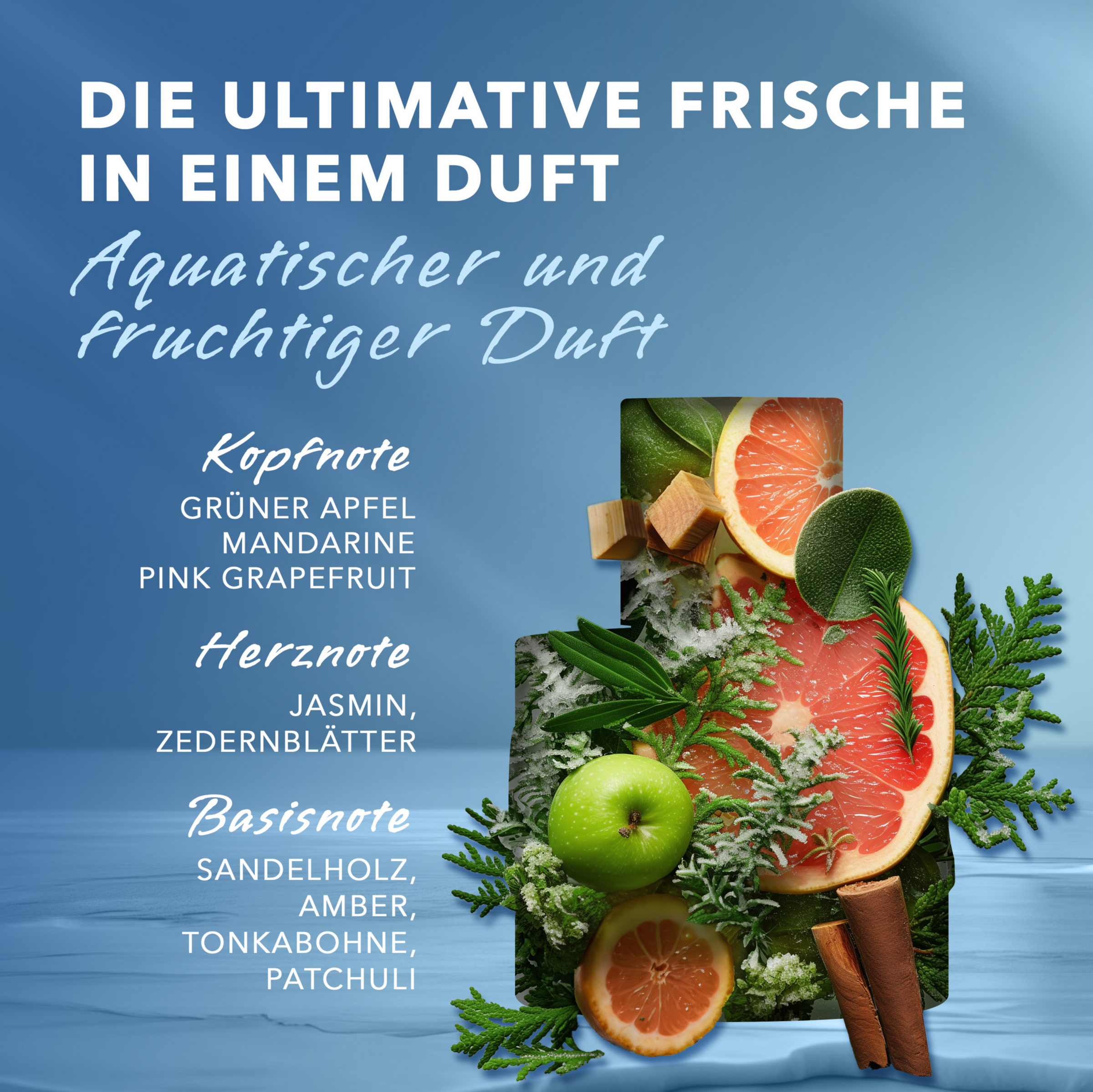 - Kopfnote: Apfel, Mandarine, Grapefruit