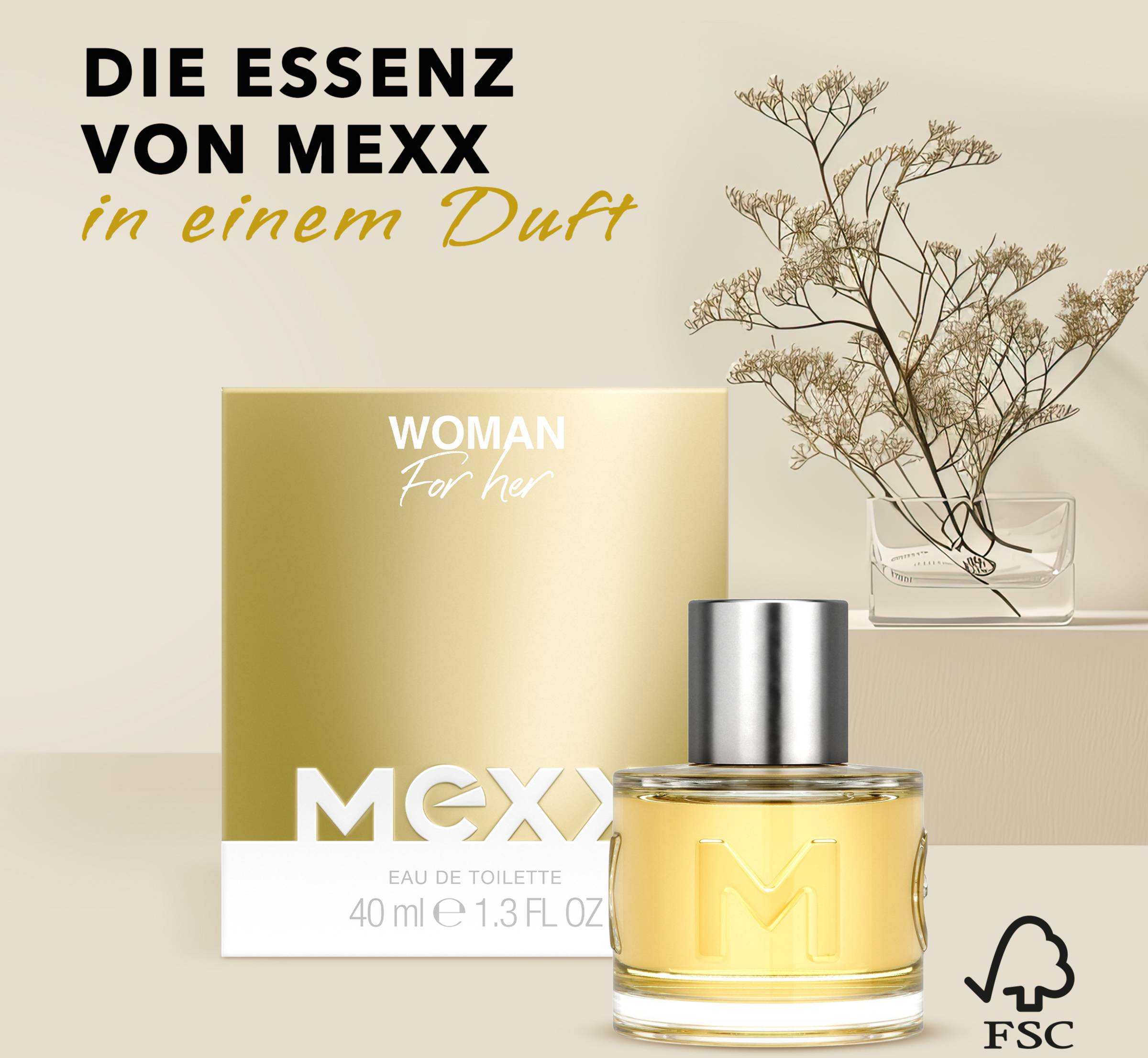 Ein Duft für selbstbewusste Frauen: Das Mexx Woman Eau de Toilette versprüht pure Weiblichkeit und lebendigen Optimismus. Die blumig-frische Duftkomposition beginnt mit spritzigen Zitrusnoten von Bergamotte und Zitrone und geht in einem üppigen Blumenbouquet aus Rosen, Maiglöckchen- und Jasminakkorden auf. Warme Nuancen aus Amber, Sandel- und Zedernholz runden das sinnliche Dufterlebnis ab. Mexx Woman ist perfekt für jede Gelegenheit – ob im Büro, in der Freizeit oder am Abend – und es eignet sich auch hervorragend als Geschenk für einen lieben Menschen. Das neue Mexx Woman Eau de Toilette überzeugt mit veganer Formel und reduzierter Verpackung mit FSC-zertifizierten Materialien. Passend zur femininen Duftkreation ist der schlichte, elegante Glasflakon mit eingeprägtem Logo.
