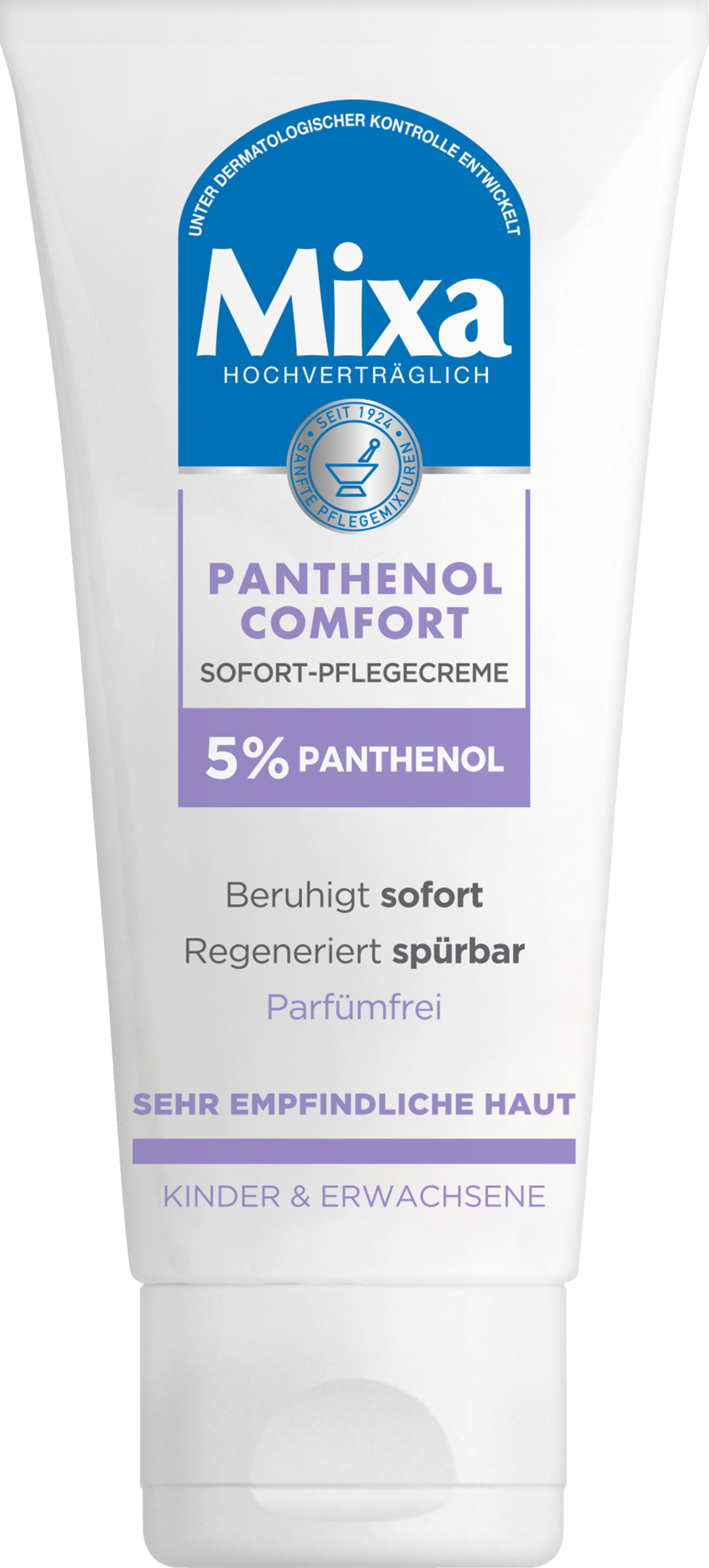 Entdecke die neue Sofort-Pflegecreme für die ganze Familie. Angereichert mit 5% beruhigendem Panthenol, mildert und regeneriert diese parfümfreie Formel extreme Trockenheit, Spannungsgefühle, Hautschüppchen und Irritationen auf der empfindlichen Haut von Gesicht, Lippen, Händen und Körper in nur einer Anwendung. Die nicht fettende, schnell einziehende Creme beruhigt irritierte Haut sofort und mildert Spannungs- und Trockenheitsgefühle für ein angenehmes Hautgefühl den ganzen Tag. Zertifiziert durch das European Centre for Allergy Research Foundation (ECARF), geeignet für Kinder & Erwachsene.