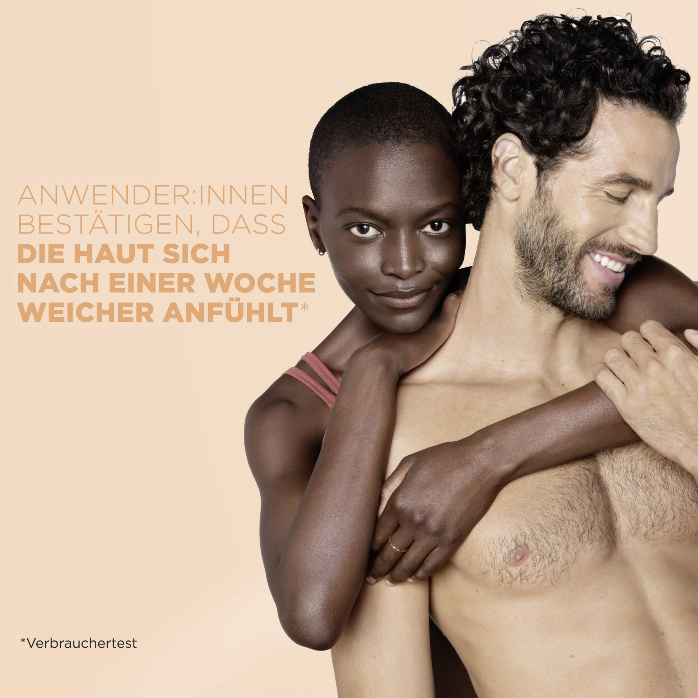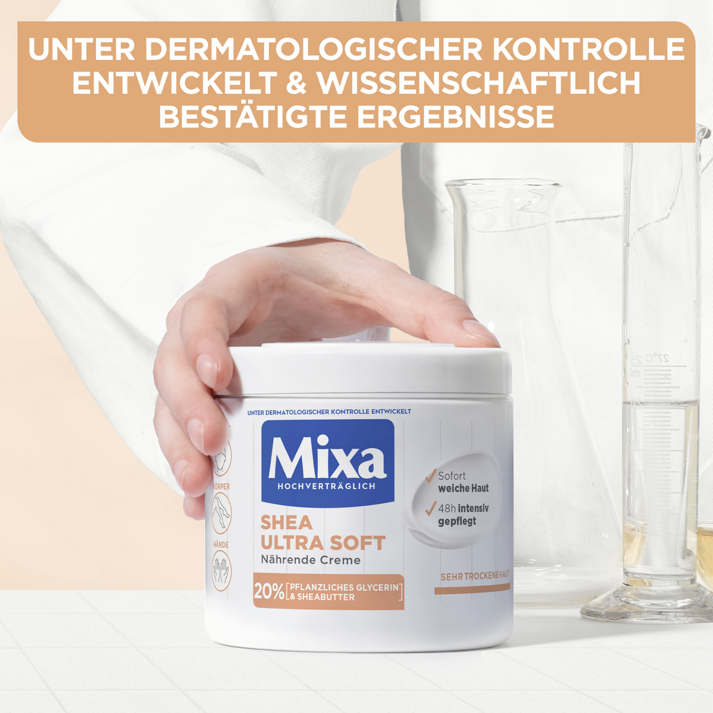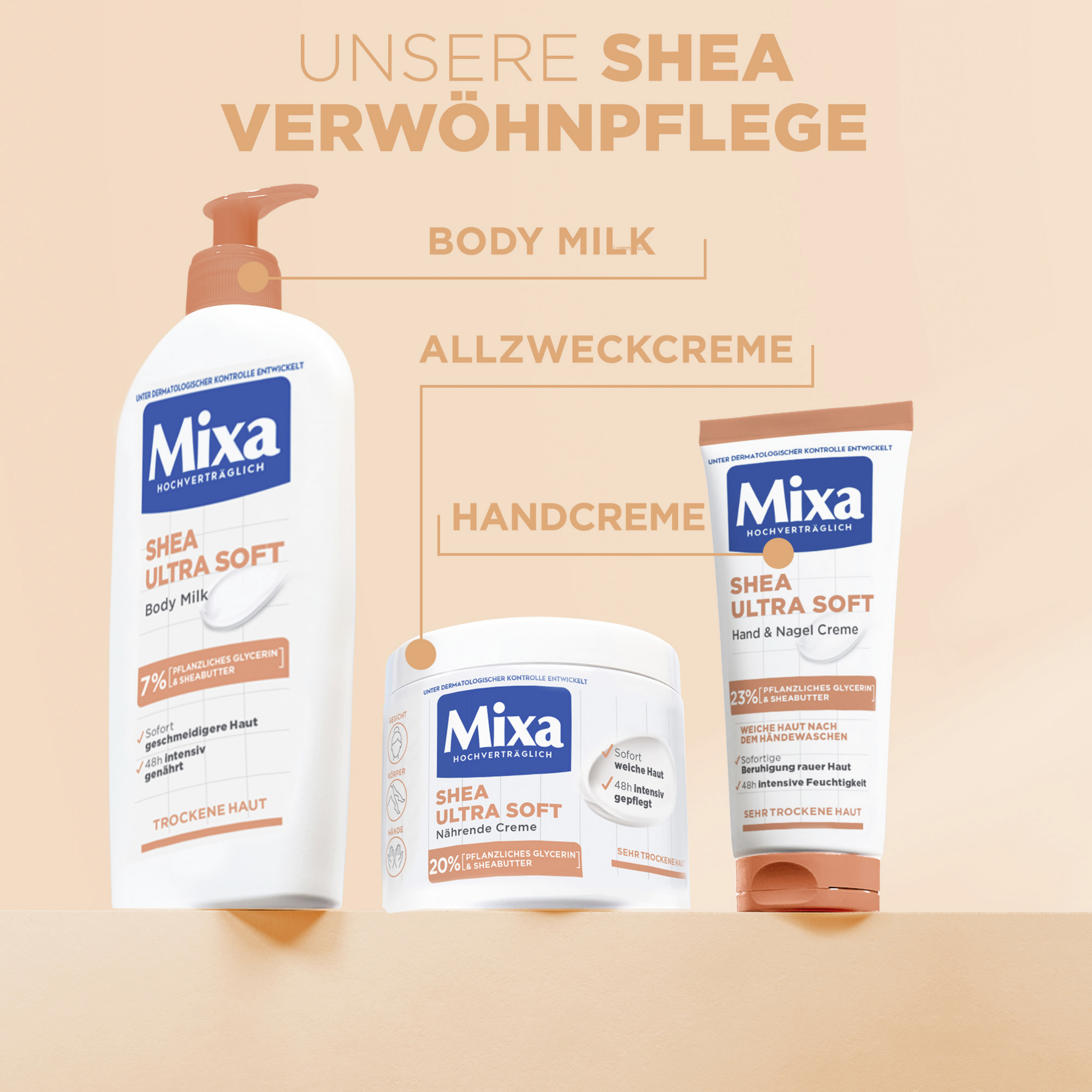 Entdecken Sie die Ultra Soft Nährende Creme für die ganze Familie. Angereichert mit einem Mix aus 20% pflanzlichem Glycerin und Sheabutter umhüllt diese schnell einziehende und nicht fettende, reichhaltige Textur sanft die Haut von Gesicht, Körper und Händen. Die tiefenwirksame Pflegeformel beruhigt die Haut ab der ersten Anwendung und selbst sehr trockene Haut fühlt sich sofort geschmeidig an. Die Haut wird bis zu 48 Stunden lang intensiv gepflegt und vor rauen Stellen, Spannungsgefühlen und anderen Zeichen von Trockenheit geschützt.