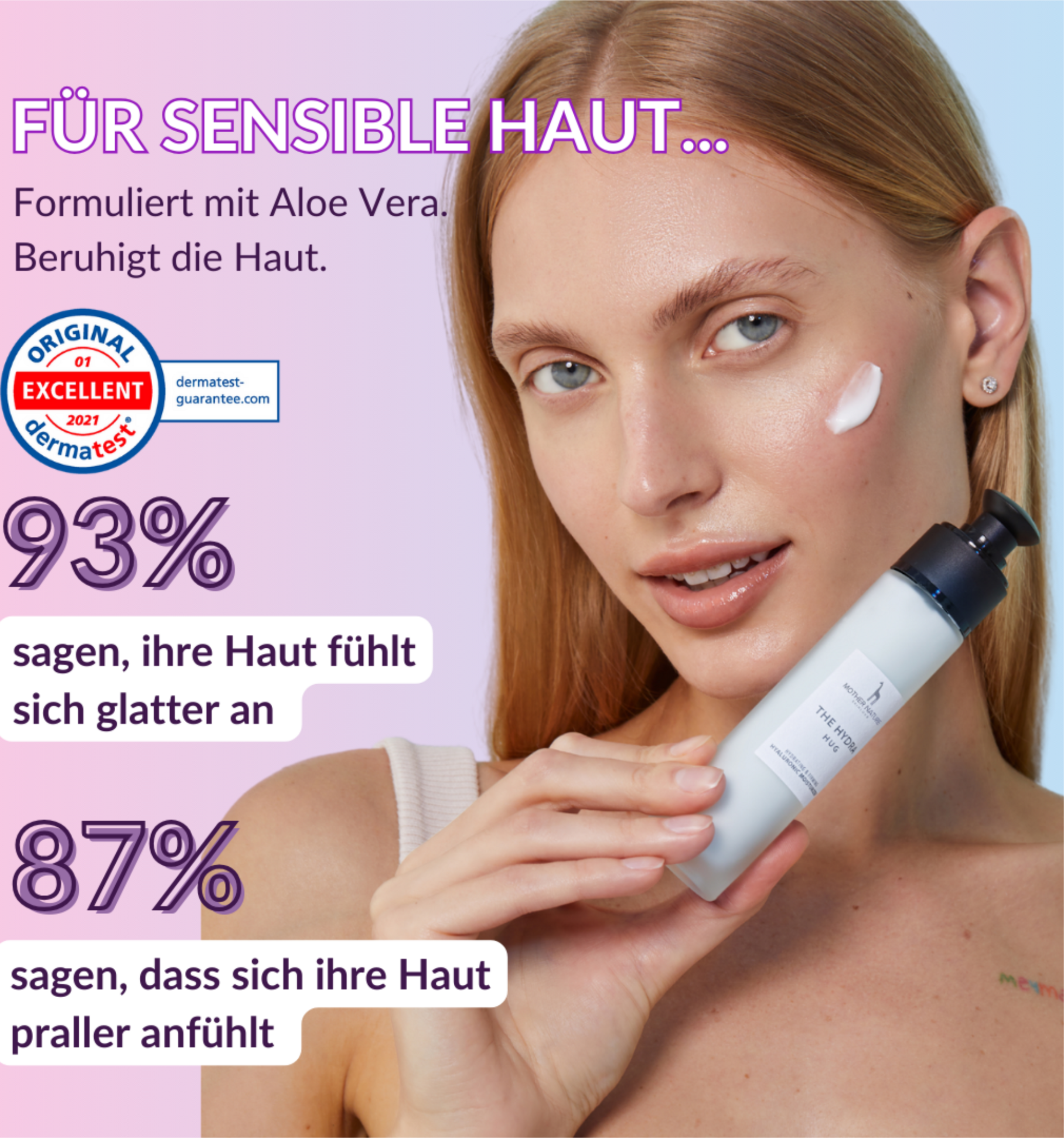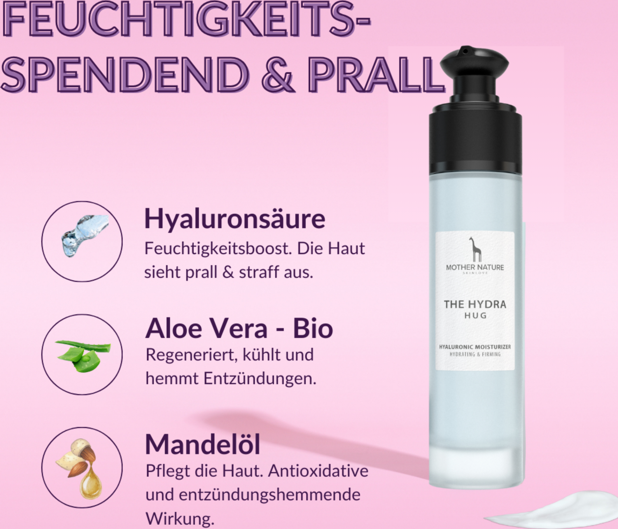 Eine blaubeerengroße Menge des Mother Nature Hyaluronsäure Moisturizers, am besten am Morgen, auf die gereinigte Haut auftragen und sanft einmassieren.