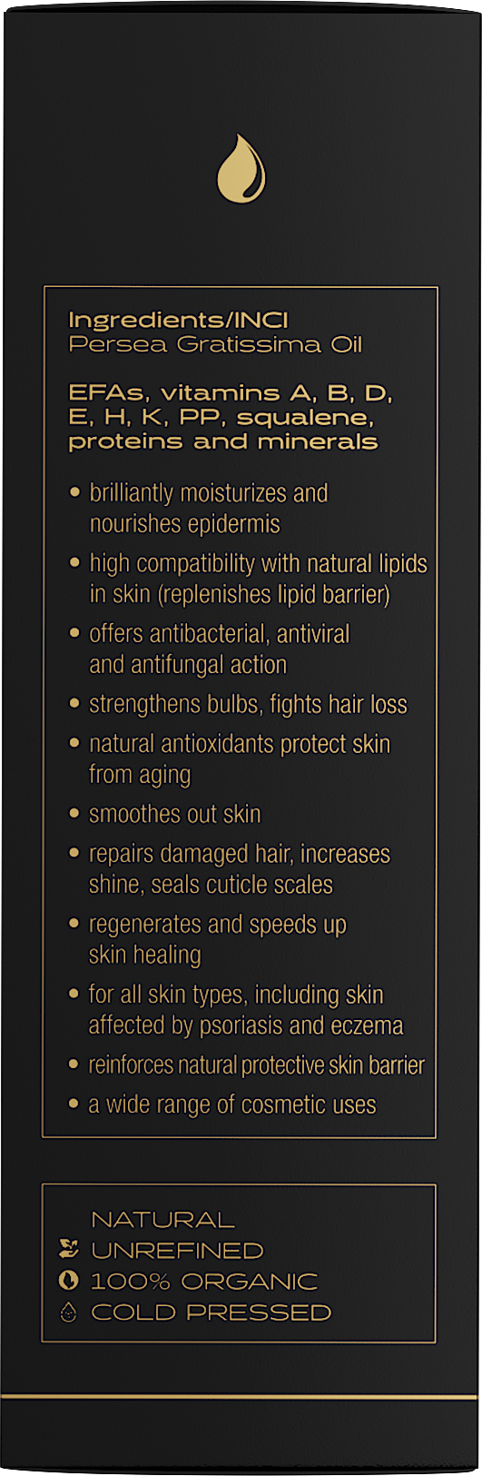 100% organisches, kaltgepresstes, nicht raffiniertes Avocadoöl für Haar, Körper, Gesicht und Nägel.