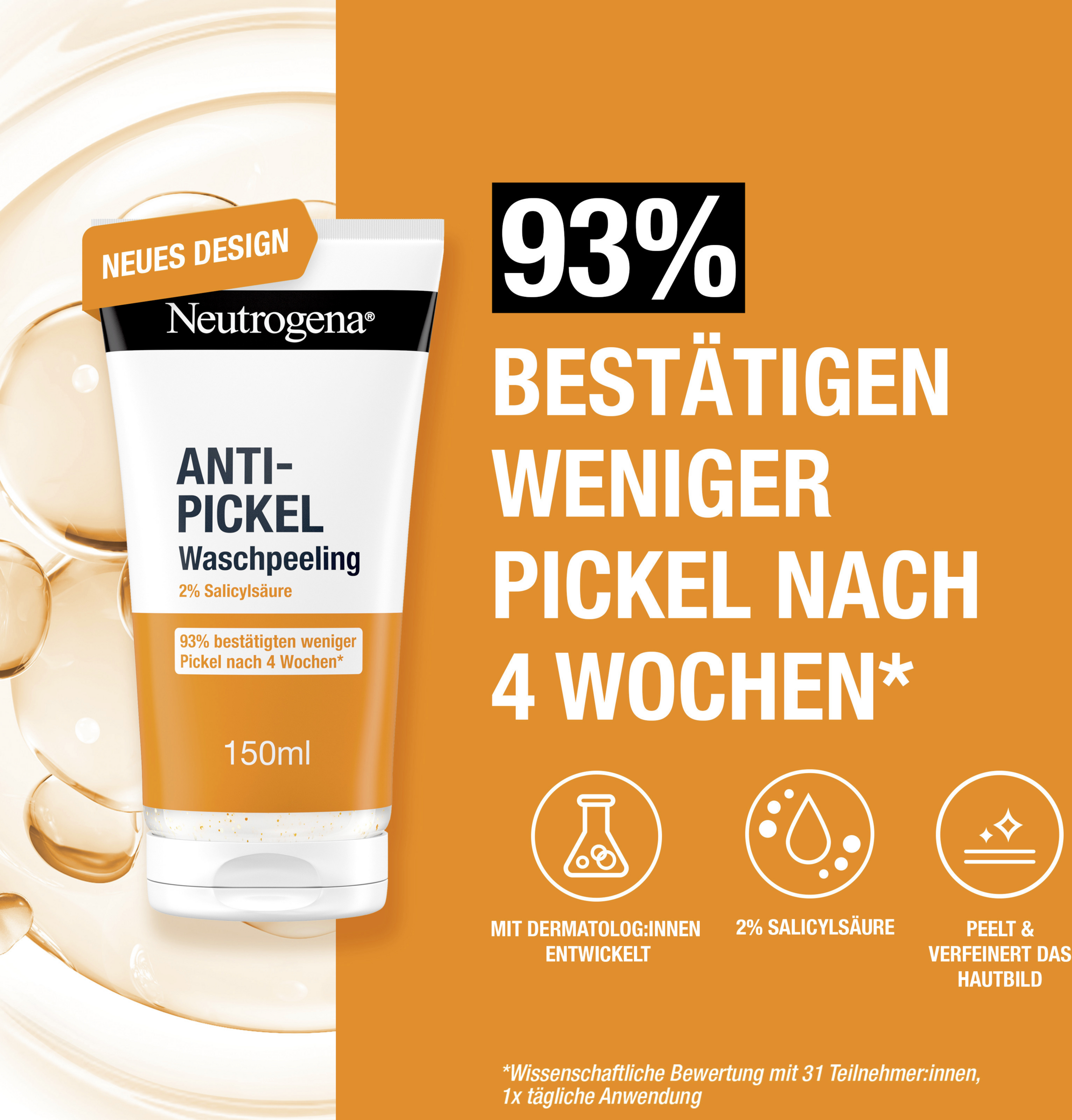 - Das Neutrogena Anti-Pickel Waschpeeling hinterlässt ein weiches & glattes Hautgefühl und ist zugleich eine sanfte Gesichtsreinigung für sofortige Ergebnisse*