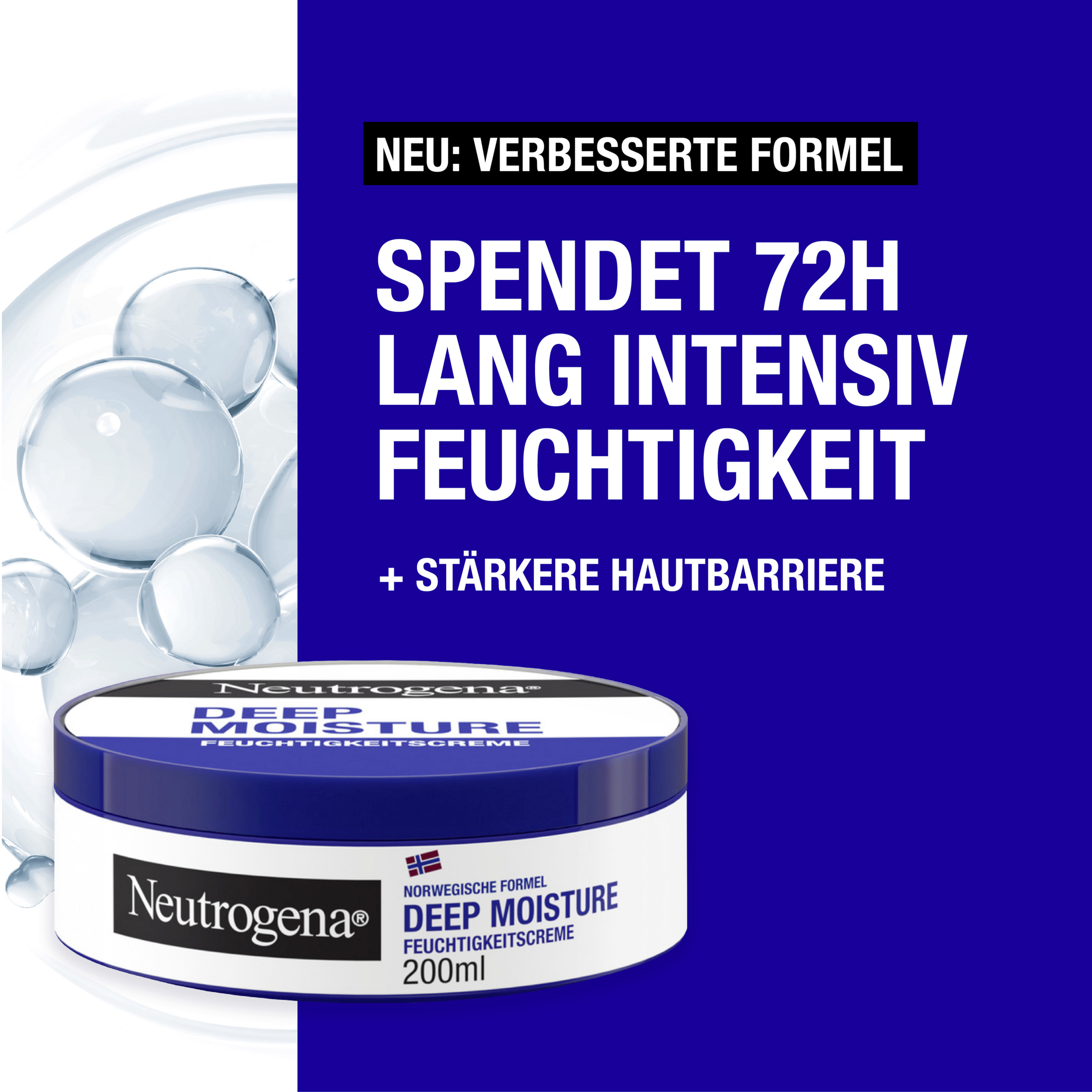- für trockene Haut – Die NEUE Pro-Ceramide-Technologie der Neutrogena Norwegische Formel Deep Moisture Feuchtigkeitscreme stärkt auf innovative Weise die essenziellen Ceramide der Haut, um trockene Haut mit Feuchtigkeit zu versorgen und zu stärken